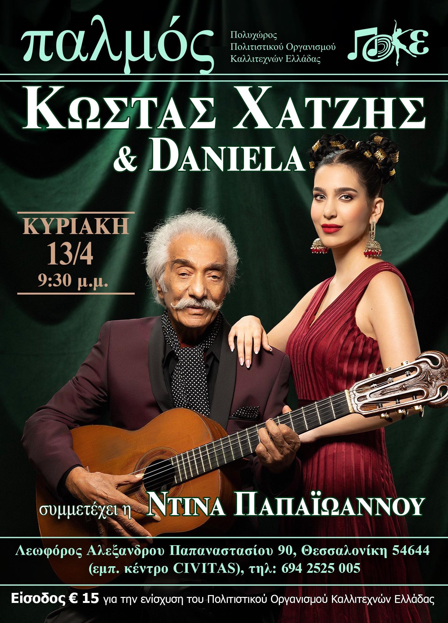Μια βραδιά γεμάτη ψυχή στον “Παλμό“. Ο πολυχώρος του Πολιτιστικού Οργανισμού Καλλιτεχνών Ελλάδας “Παλμός“, υποδέχεται τον Κώστα Χατζή σε μια βραδιά καρδιάς και μνήμης. Ο σπουδαίος τραγουδοποιός που έδωσε φωνή στις ανησυχίες μιας ολόκληρης εποχής, συναντά επί σκηνής την Δανιέλα Χατζή, σε μια μουσική συνάντηση που ενώνει γενιές και συναισθήματα.