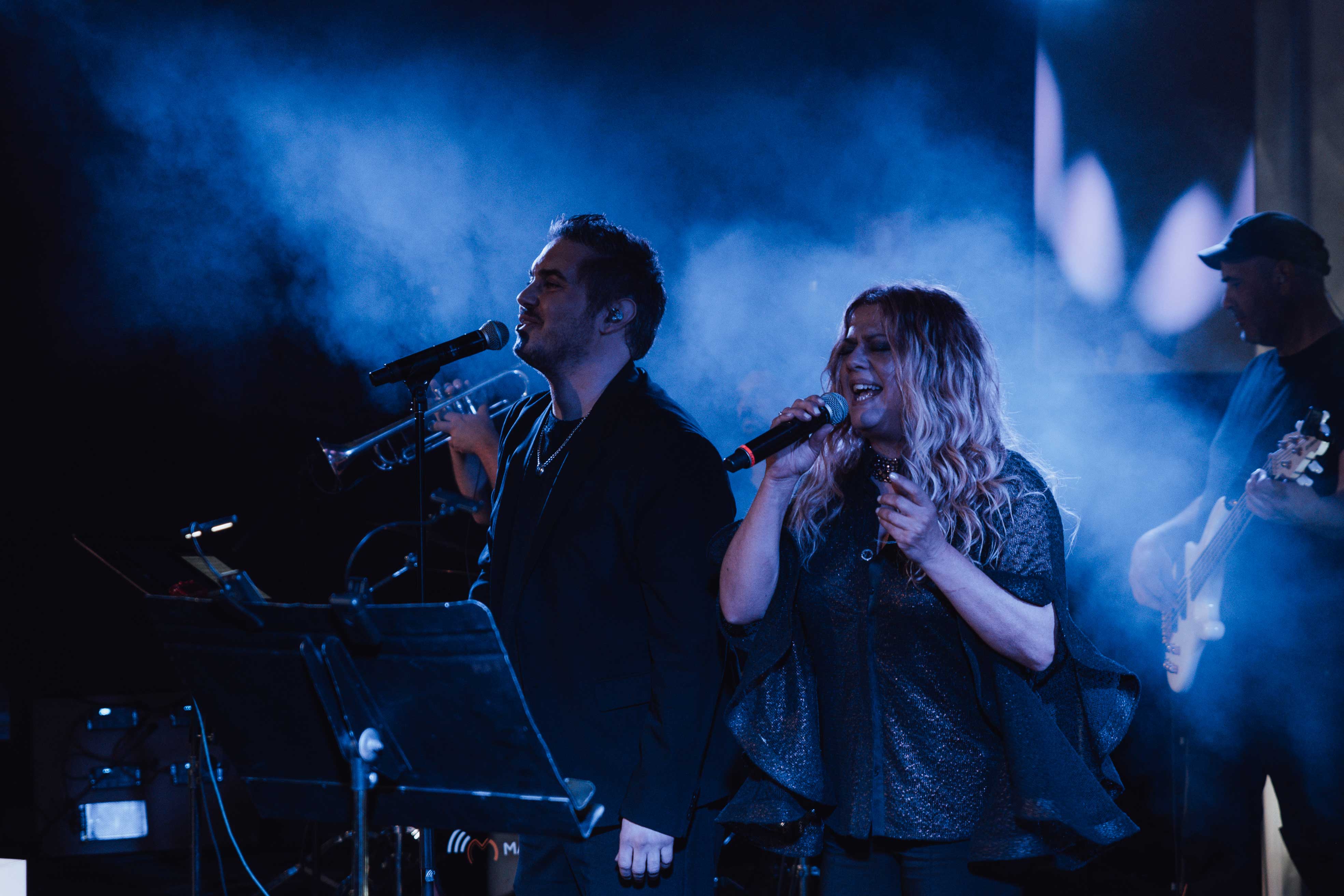 Ιδιαίτερη στιγμή της βραδιάς όταν ο Μιχάλης Χαζηγιάννης κάλεσε στη σκηνή την Ελένη Τσαλιγοπούλου και τραγούδησαν την επιτυχία του δίσκου “Δύο Ίσον Ένα”.