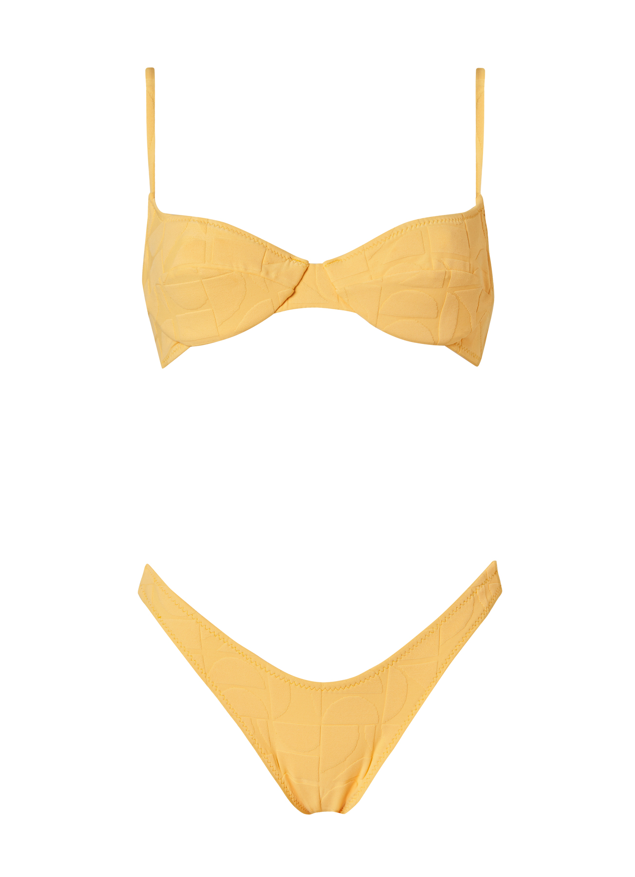 Διαχρονική αξία για την Stefania Frangista, και ένα από τα μεγαλύτερα highlights της φετινής συλλογής αποτελεί η εισαγωγή του seersucker υφάσματος, το οποίο εξελίσσει το sponge που τόσο αγαπήθηκε τα προηγούμενα χρόνια, και συμπληρώνει την πλούσια γκάμα ανάγλυφων υφών όπως τα rib και curly. Με μια μοναδική αίσθηση πολυτέλειας, το seersucker επανέρχεται στα νέα Ali και August, και στο κλασικό ολόσωμο Josie με μια λεπτή ασημένια κλωστή που ενσωματώνεται στο ύφασμα, προσδίδοντας διακριτική λάμψη και εκλεπτυσμένο αποτέλεσμα. Παράλληλα, στα ήδη ανάρπαστα ανάγλυφα σχέδια έρχεται να προστεθεί και μια νέα πρωτοεμφανιζόμενη jacquard υφή με γεωμετρικά σχήματα σε τρισδιάστατο εφέ – ένα νέο σχέδιο που δημιούργησε αποκλειστικά η Stefania Frangista – στις αποχρώσεις yellow, brandy και purple που κυριαρχούν στο αποκαλυπτικό, ψηλόμεσο Fernanda αλλά και στο ολοκαίνουργιο Cooper που είναι ιδανικό για να αναδεικνύει το μπούστο τόσο σε petite όσο και σε πιο πληθωρικές φιγούρες.