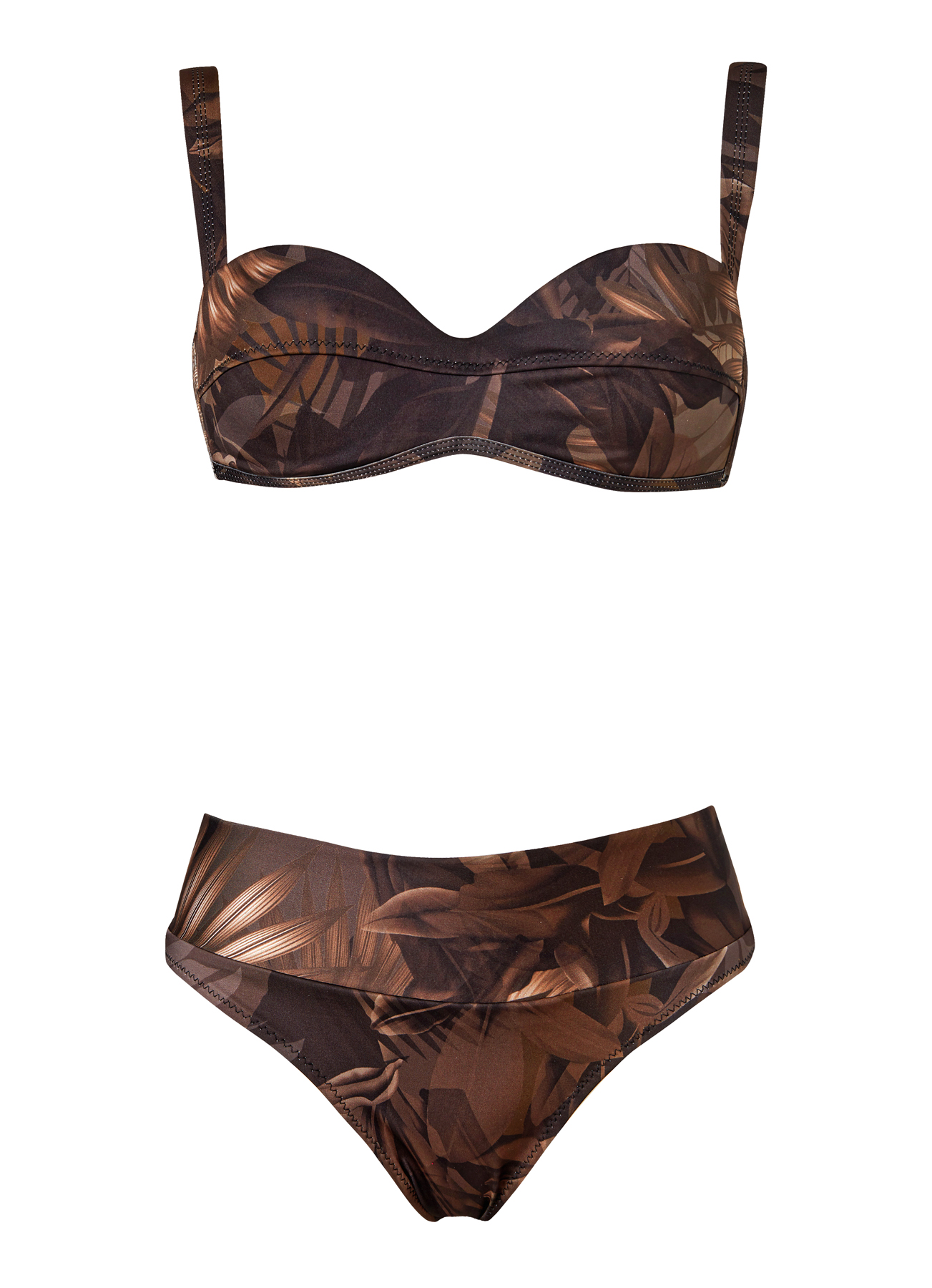 Ανάμεσα στα τροπικά σχέδια της συλλογής ξεχωρίζει και το rainforest print σε βαθιά καφέ απόχρωση που ντύνει το ιδιαίτερο και κομψό Zoe, μια ιδανική επιλογή για μεγαλύτερο στήθος, με μοντέρνα οριζόντια ραφή που προσφέρει στήριξη και στυλ, αλλά και το lagoon print με τα τροπικά λουλούδια που αποτελεί ένα από τα star μαγιό για το φετινό καλοκαίρι και το βρίσκουμε: στο bestseller Rae με τα beads σε απόχρωση latte στο top και στο bottom, αλλά και στο εξαιρετικά θηλυκό Prince, που αποτελεί ένα από τα νέα πατρόν της κολεξιόν, με τα λεπτά straps και το V-cut bottom που στέκεται ψηλά στους γοφούς, ιδανικό για τις καλλίγραμμες σιλουέτες και όχι μόνο.