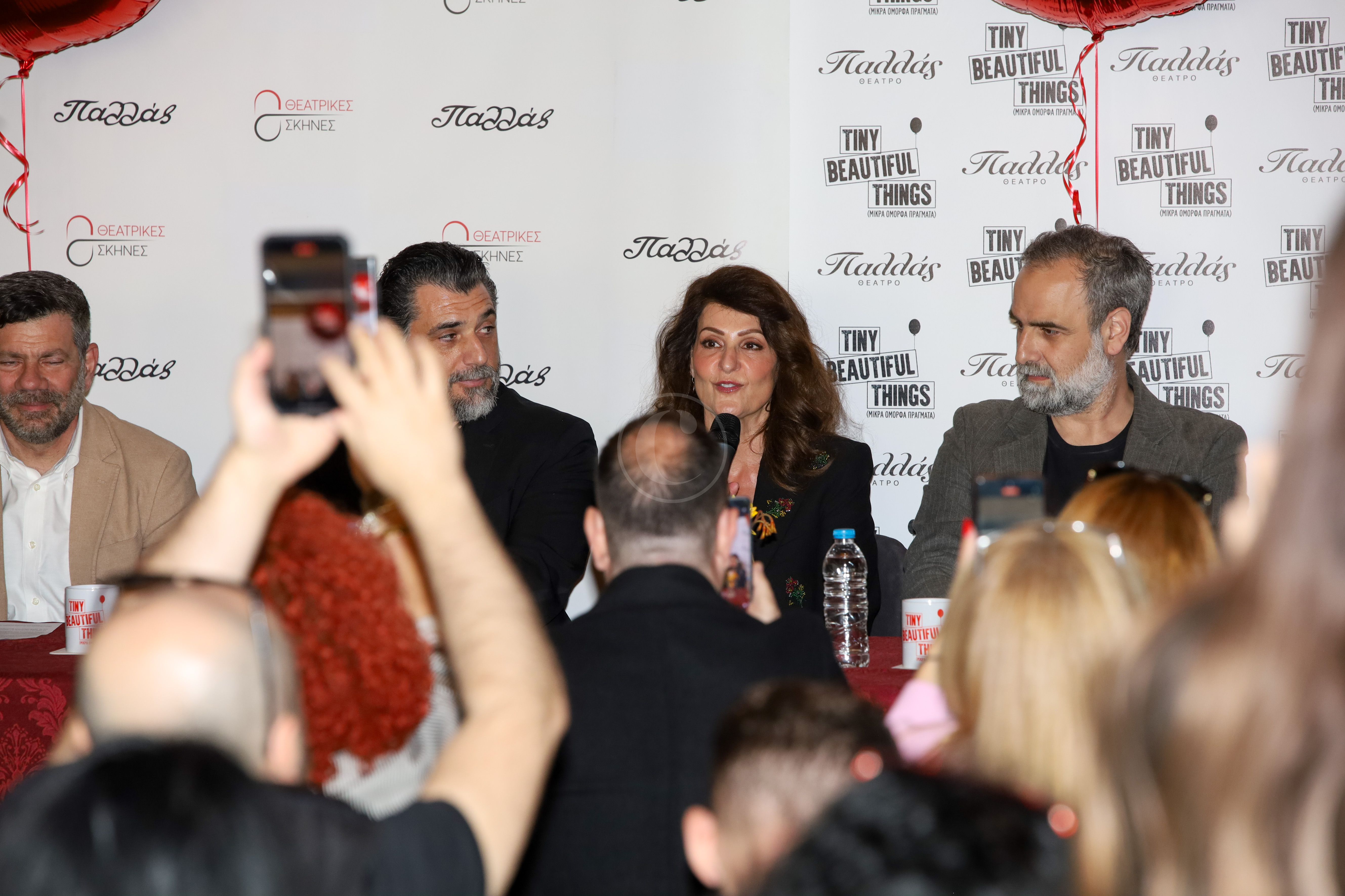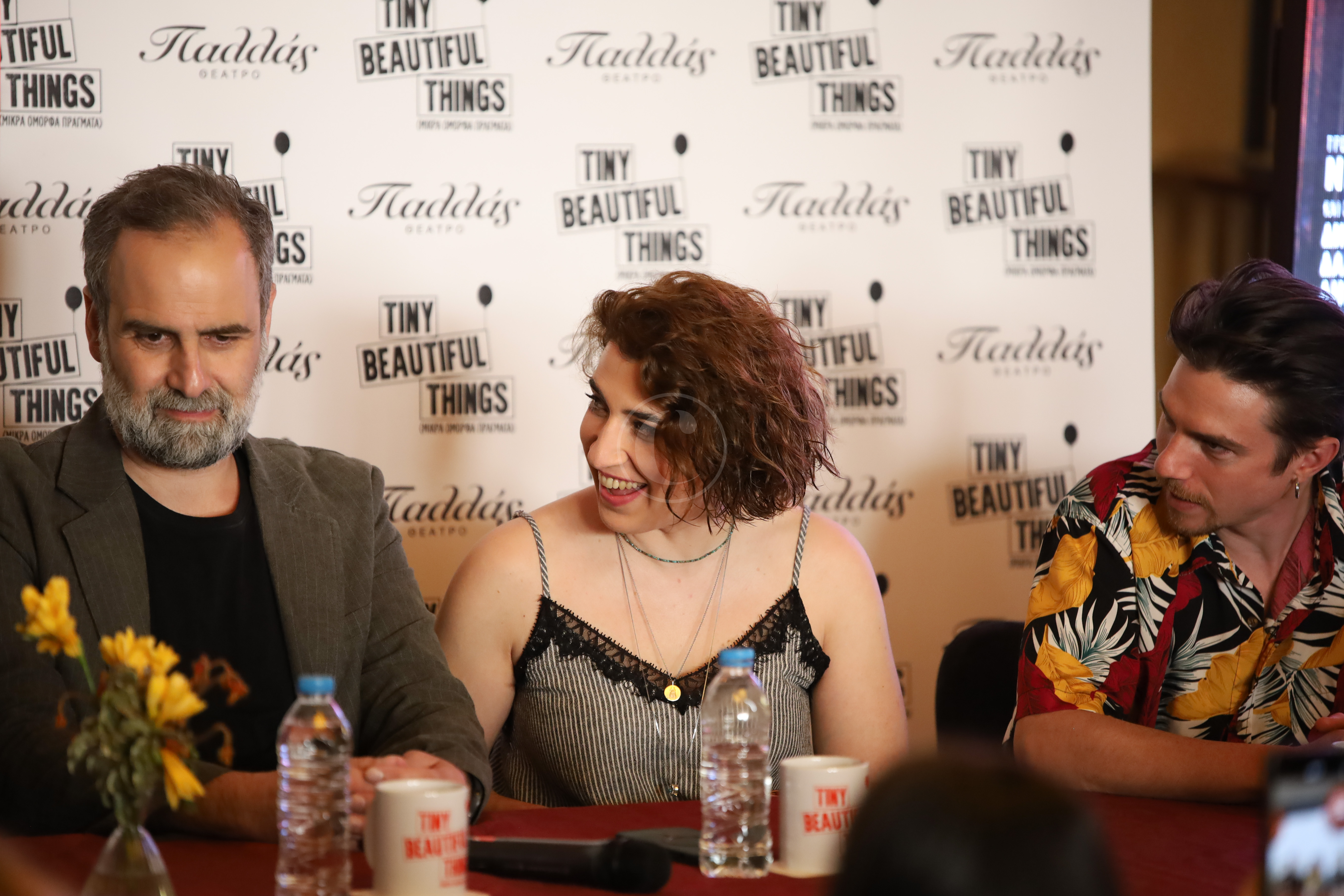 Η Δανάη Λουκάκη μίλησε για την έκπληξη που βίωσε όταν της έγινε η πρόταση για την παράσταση αλλά και για τη σημαντικότητα του έργου, που μιλάει για το μοίρασμα των συναισθημάτων και την τέχνη του να μιλάς και να ακούγεσαι. Ο Δημήτρης Παπανικολάου επεσήμανε πόσο τιμητικό είναι για εκείνον να αποτελεί μέρος της παράστασης, ενώ πριν του προταθεί ο ρόλος, ένας δικός του άνθρωπος του αποκάλυψε πως διαβάζοντας το βιβλίο αυτό βοηθήθηκε σε μια πολύ δύσκολη στιγμή της ζωής του. Τέλος, ο Δημήτρης Κίτσος μίλησε με θέρμη για το θετικό κλίμα που επικρατεί στις πρόβες, τονίζοντας πως θεωρεί τον εαυτό του τυχερό που έχει την ευκαιρία να συνεργάζεται με τη NiaVardalos και με μια τέτοια ομάδα, και μάλιστα τόσο αρμονικά και δημιουργικά.