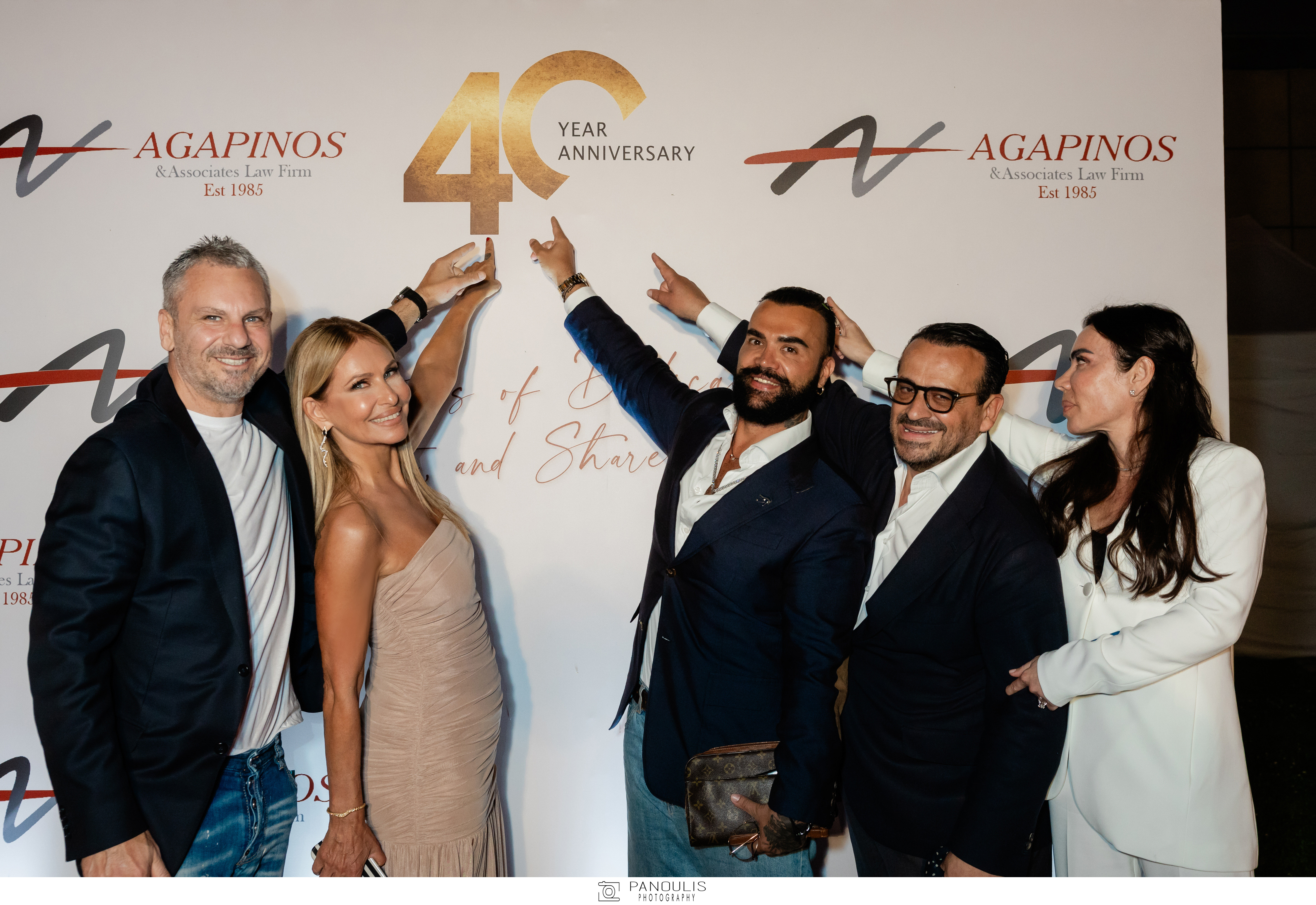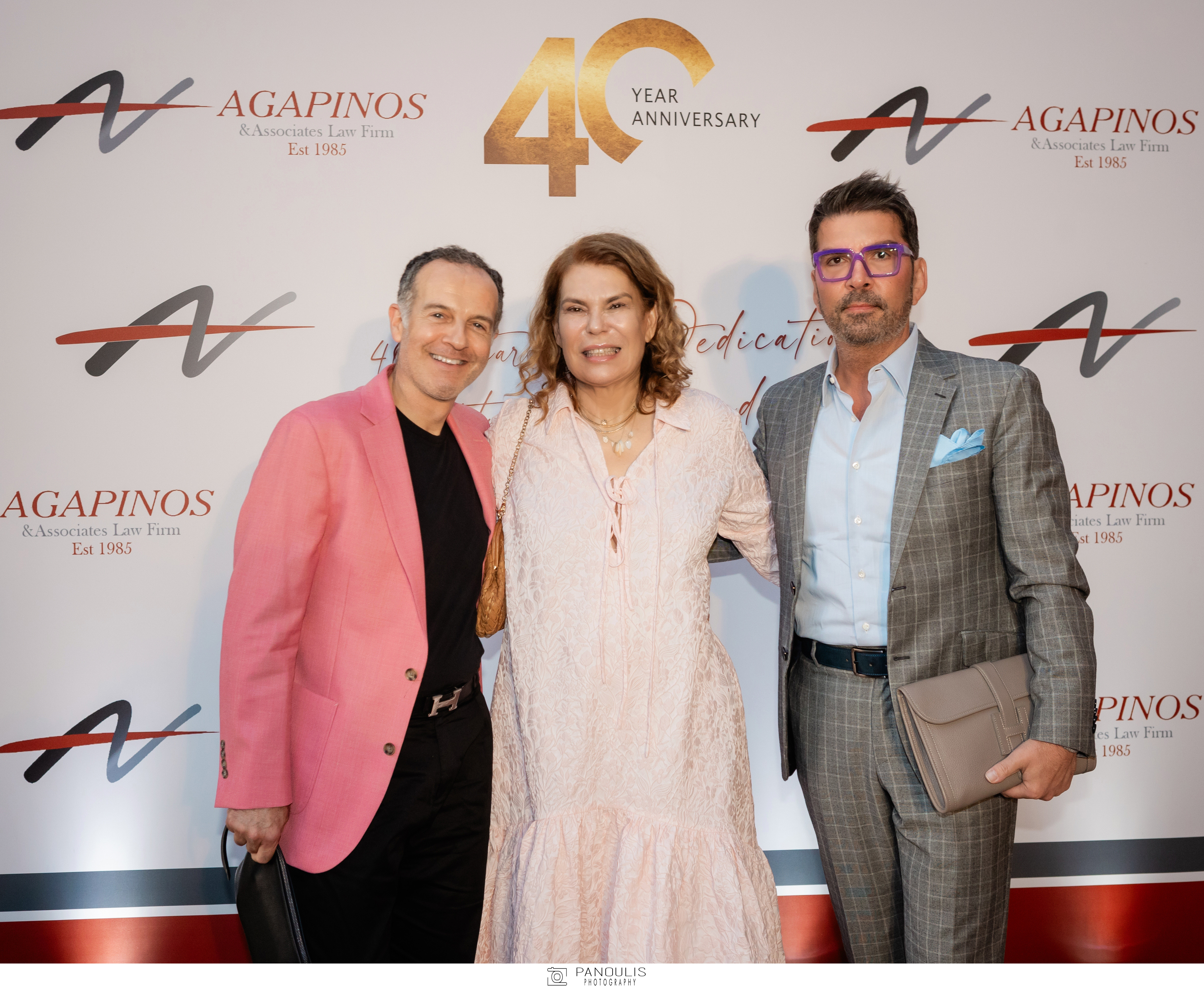 Τα 40 χρόνια επιτυχημένης παρουσίας τους στη δικηγορία, γιόρτασαν με πελάτες και φίλους οι ιδρυτές και εταίροι της γνωστής και διακεκριμένης Δικηγορικής Εταιρίας Νίκος Αγαπηνός & Συνεργάτες. Στην πολύ όμορφη βραδιά που διοργάνωσαν για τους καλεσμένους τους, παραβρέθηκε πλήθος επιχειρηματικού, καλλιτεχνικού, νομικού και δημοσιογραφικού κόσμου.