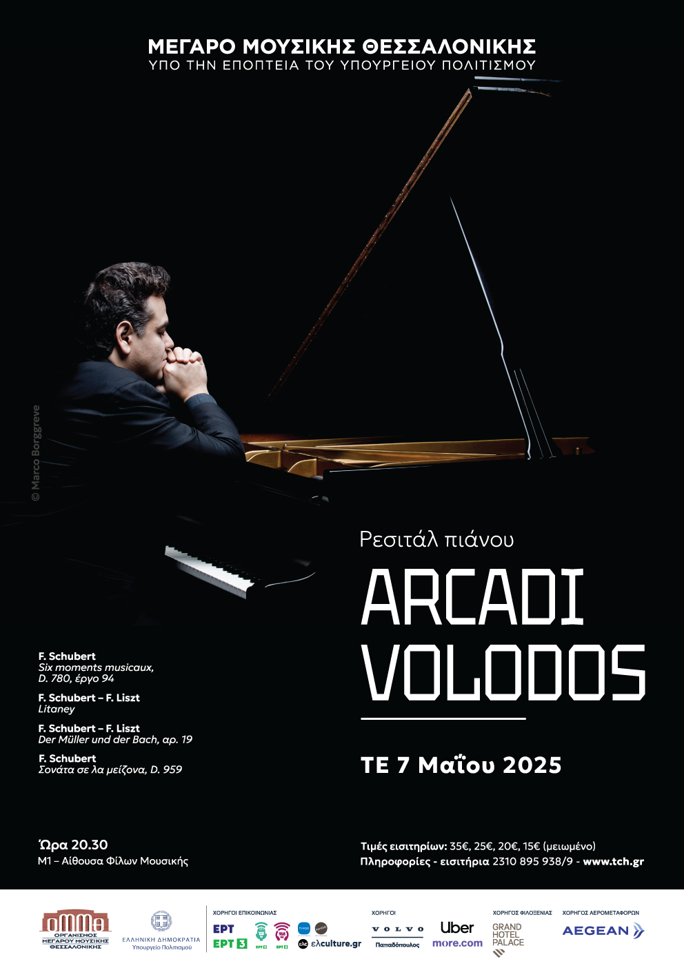 Ο Arcadi Volodos, που γεννήθηκε στην Αγία Πετρούπολη το 1972, έχει εμφανιστεί σε πολλές χώρες δίνοντας ρεσιτάλ και συμπράττοντας με τα πιο γνωστά ορχηστρικά σύνολα όπως τη Φιλαρμονική ορχήστρα του Βερολίνου,την ορχήστρα Philharmonia του Λονδίνου και τη Φιλαρμονική της Νέας Υόρκης, υπό τη διεύθυνση διακεκριμένων μαέστρων όπως οι Myung-Whun Chung, Lorin Maazel, Valery Gergiev και James Levine. Ταυτόχρονα, αποτελεί ένα διεθνή σημείο αναφοράς για την κλασική μουσική εδώ και είκοσι χρόνια, χάρη στο ταλέντο του και την δημιουργικότητα του ως καλλιτέχνης, ενώ έχει χαρακτηριστεί και ως ένας ασύγκριτος ποιητής των πλήκτρων.