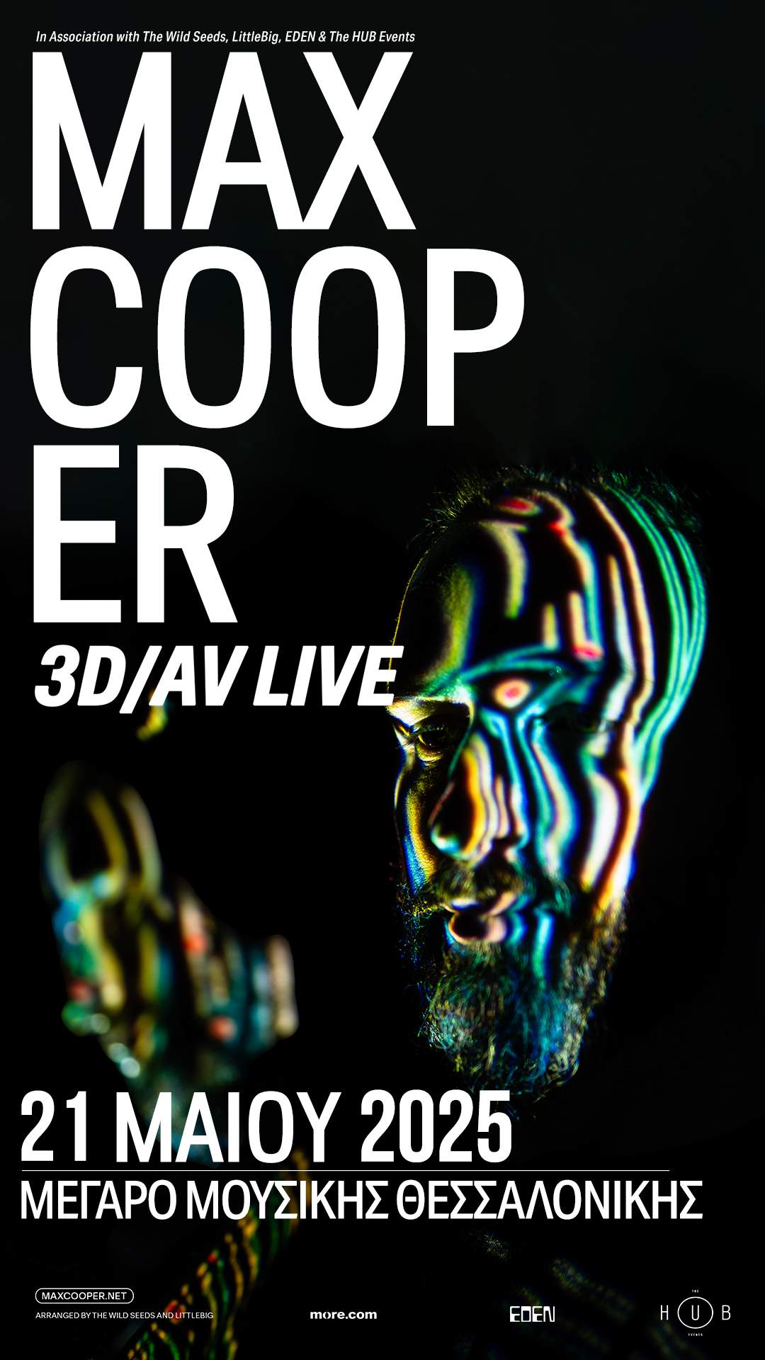 Ο κορυφαίος καλλιτέχνης Max Cooper, από τους πιο σημαντικούς ηλεκτρονικούς μουσικούς παραγωγούς της εποχής μας, έρχεται στη Θεσσαλονίκη για να μας παρουσιάσει μία συναρπαστική 3D οπτικοακουστική εμπειρία στις 21 Μαΐου 2025, στο Μέγαρο Μουσικής.