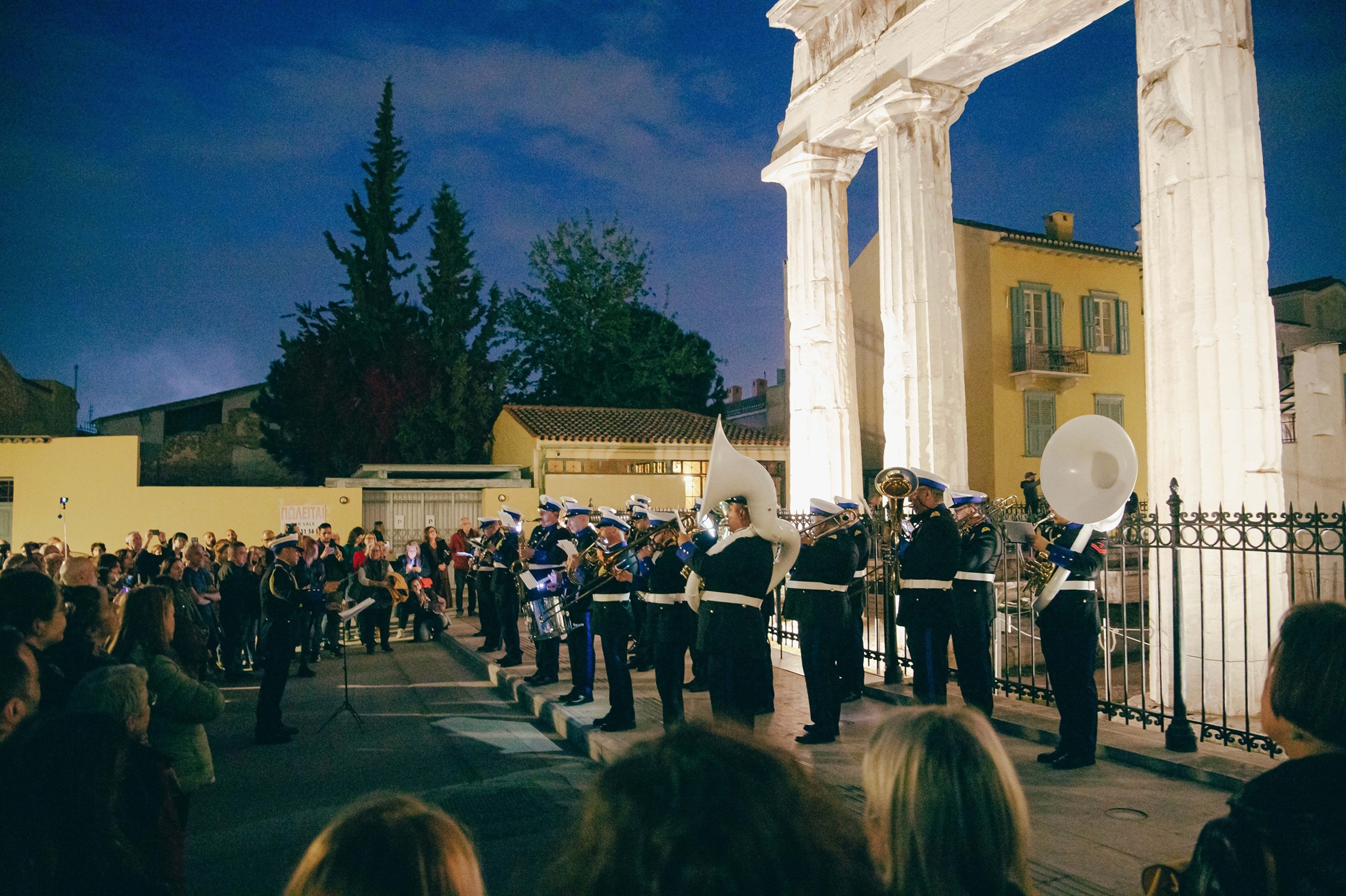 Ξεχωριστό τόνο στο Φεστιβάλ έδωσαν οι καθιερωμένες περιπατητικές συναυλίες με τις μπάντες στα πέριξ της Ακρόπολης. Η Φιλαρμονική του Δήμου Χαλανδρίουξεκίνησε τη δική της διαδρομή από την είσοδο του Μουσείου Ακρόπολης στη Διονυσίου Αρεοπαγίτου και έφθασε, μέσω της Αποστόλου Παύλου έως την Πλατεία του Θησείου, η Στρατιωτική Μουσική Φρουράς Αθηνών ξεκίνησε από την είσοδο του Μουσείου Ακρόπολης και μέσω της Πλάκας έφθασε στην Πλατεία της Μητρόπολης,ενώ η Μουσική του Πολεμικού Ναυτικού έκανε τη διαδρομή πέριξ της Ρωμαϊκής Αγοράς στην Πλάκα.