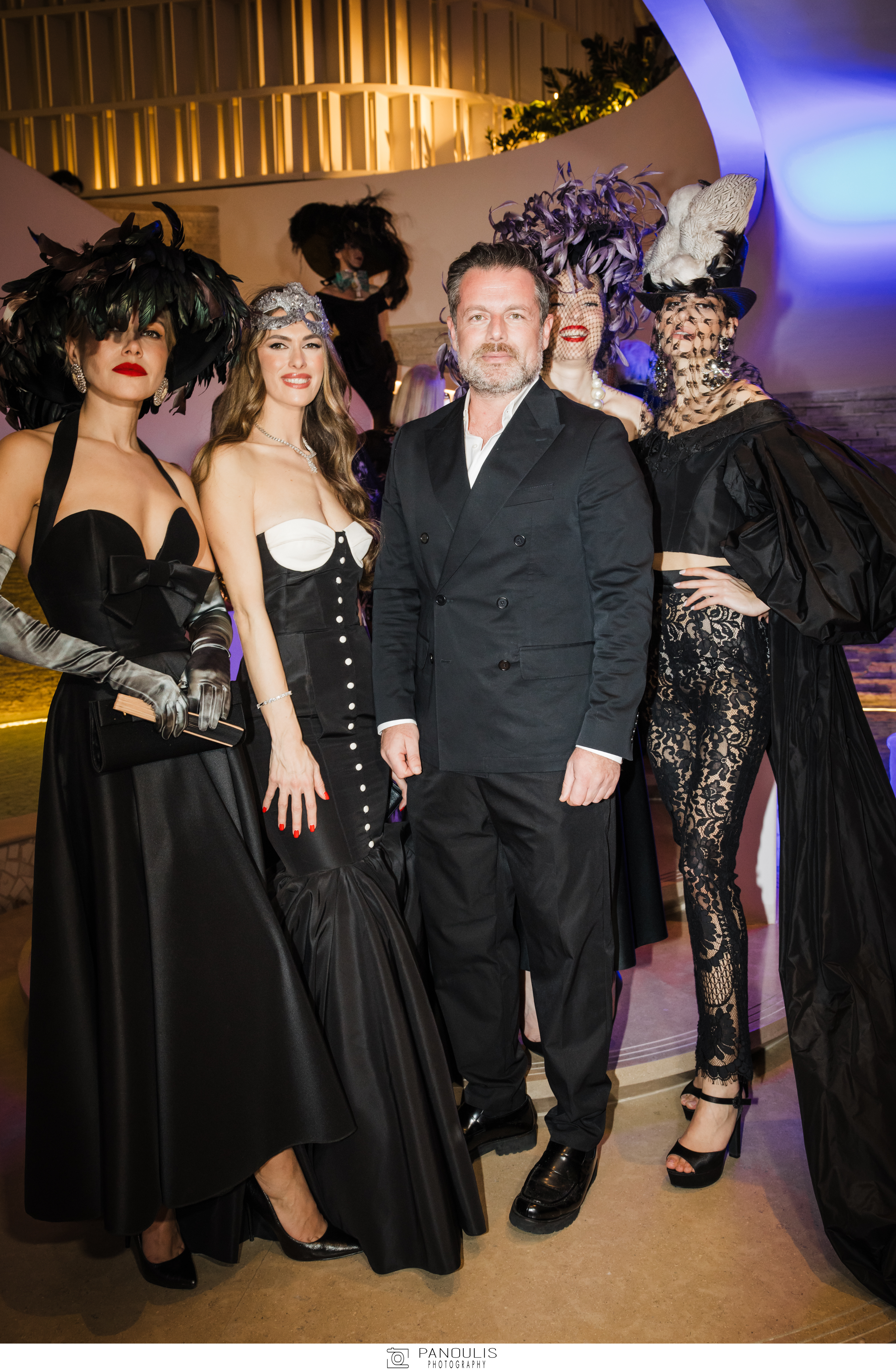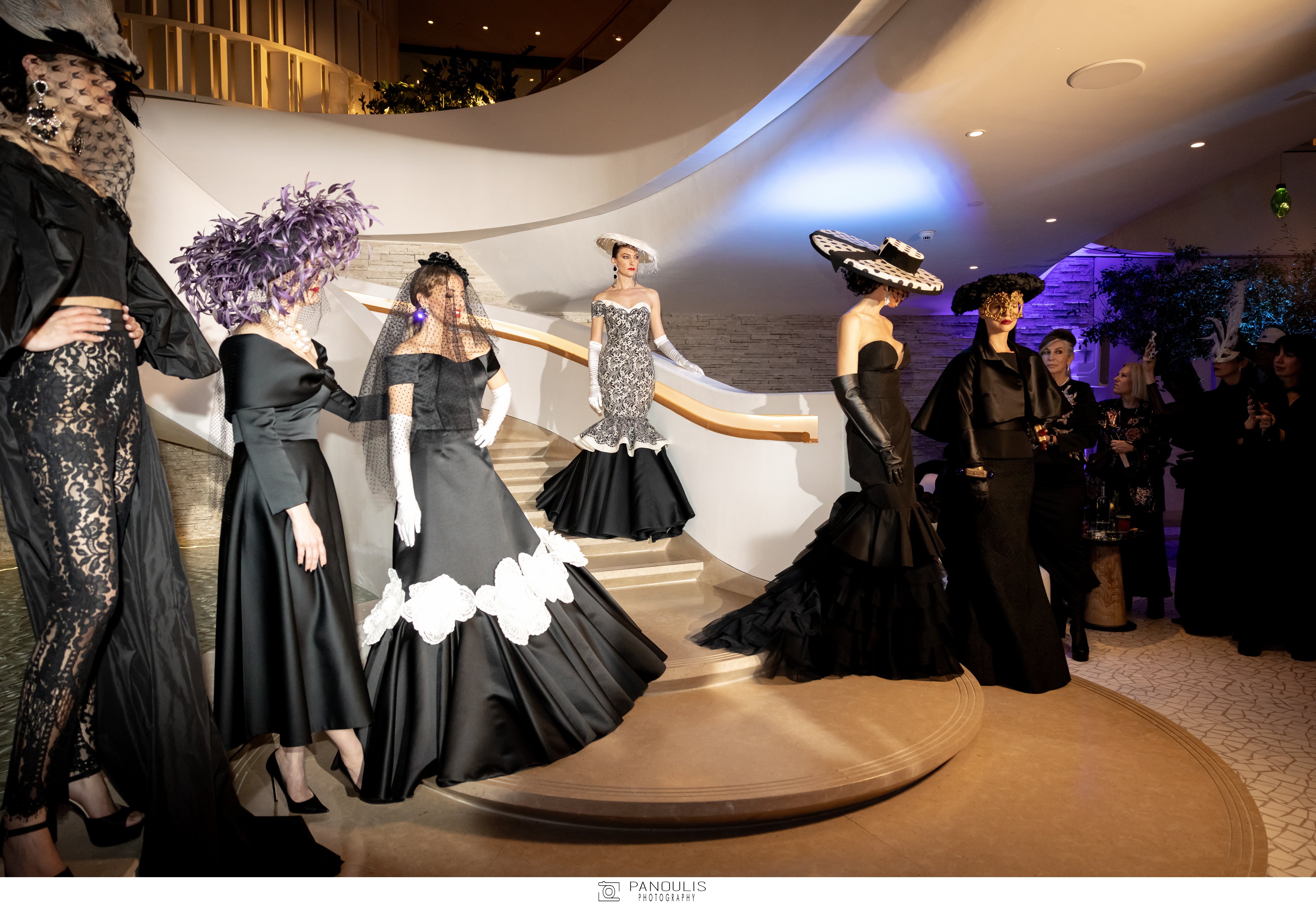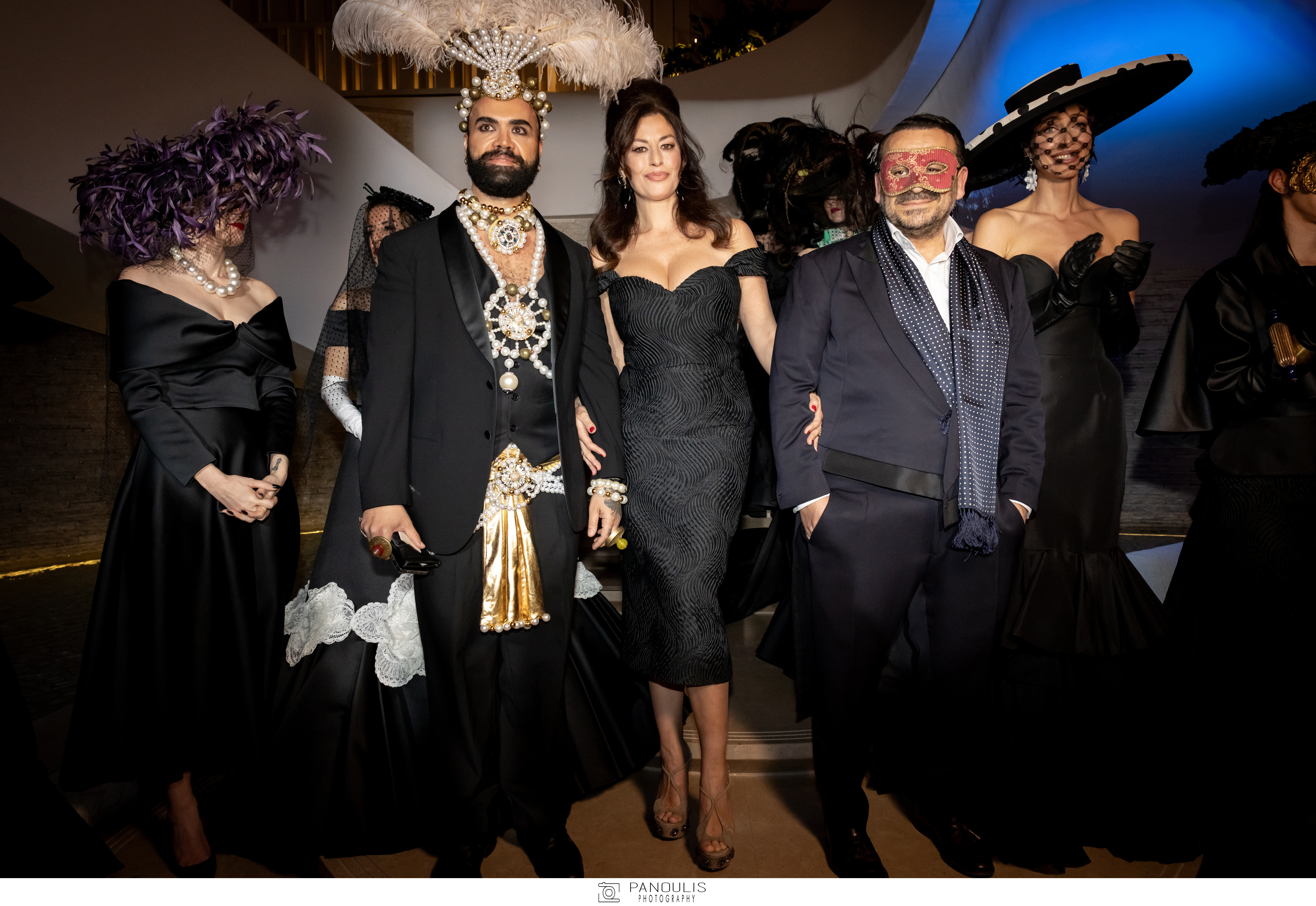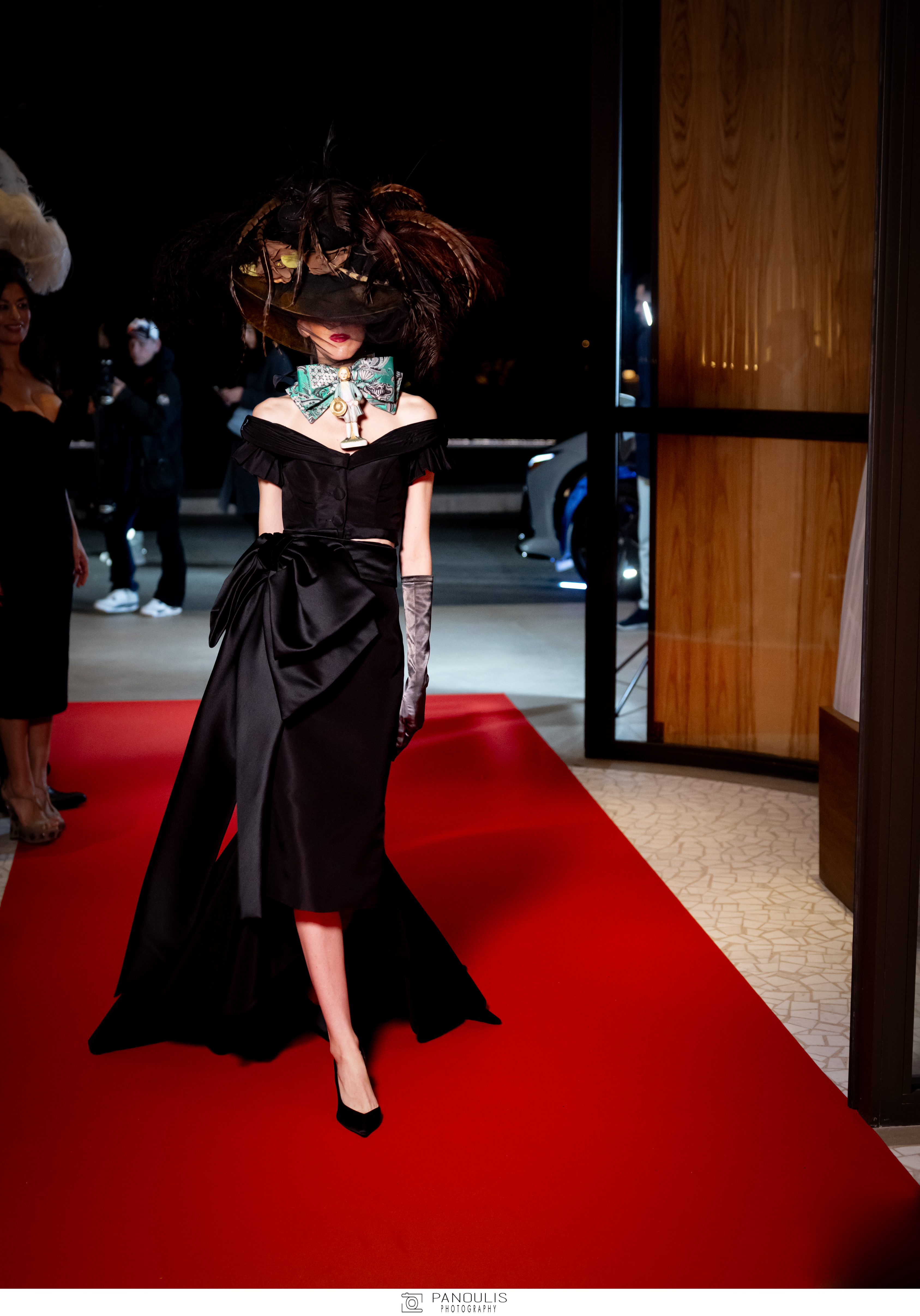 Η εκδήλωση κορυφώθηκε με ένα εντυπωσιακό couture moment του Maison Zoulias, καθώς δεκαπέντε μοντέλα κατέβηκαν την επιβλητική σκάλα του resort, παρουσιάζοντας δημιουργίες σε άσπρο και μαύρο, με έντονες θεατρικές αναφορές, αίσθηση masquerade, κομψότητα και μυστήριο. Τα looks ολοκληρώθηκαν με κοσμήματα του Περικλή Κονδυλάτου, συνθέτοντας ένα μοναδικό tableau vivant που ανέδειξε τη διαχρονική φινέτσα του οίκου μέσα από μια σύγχρονη αισθητική.