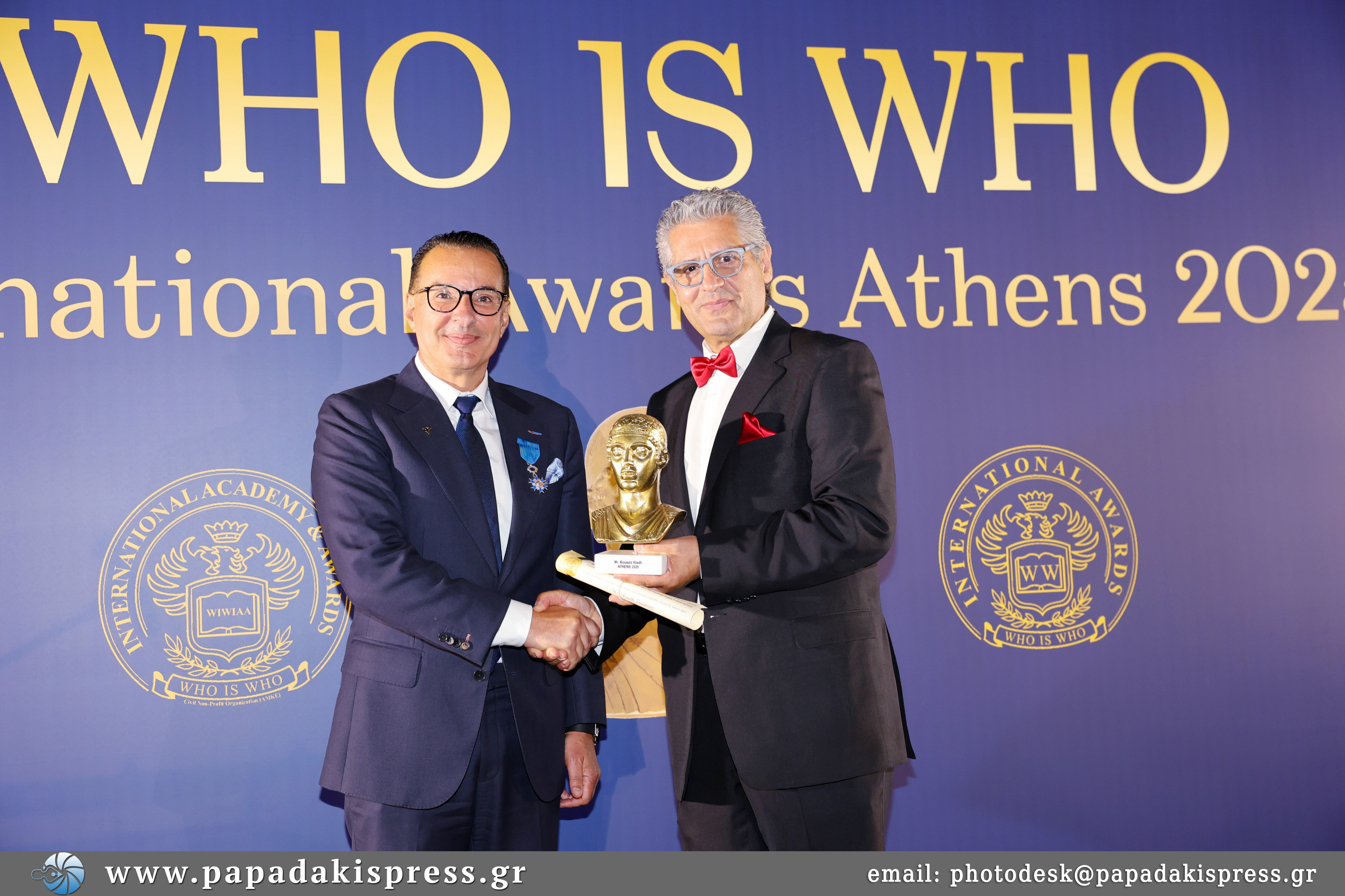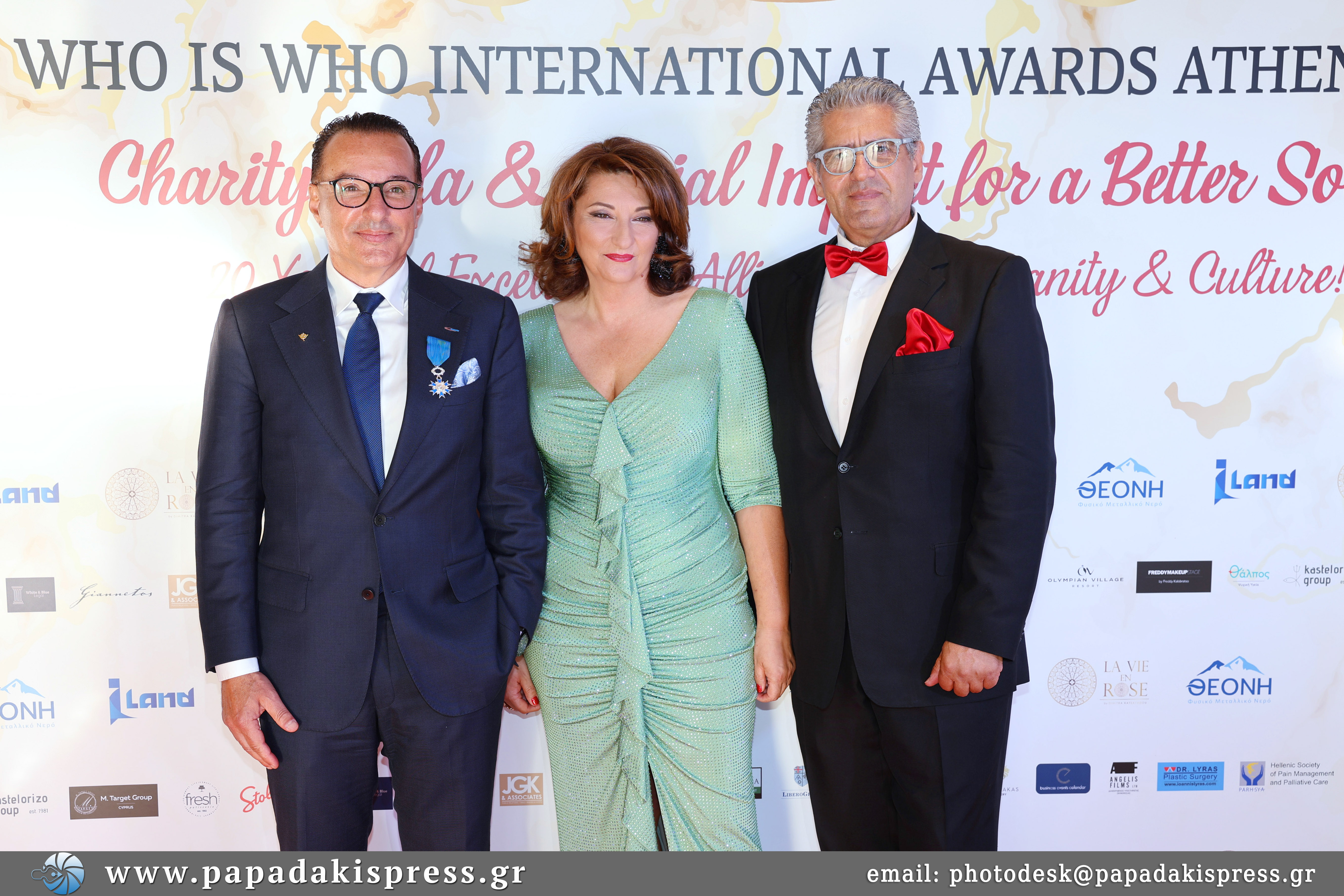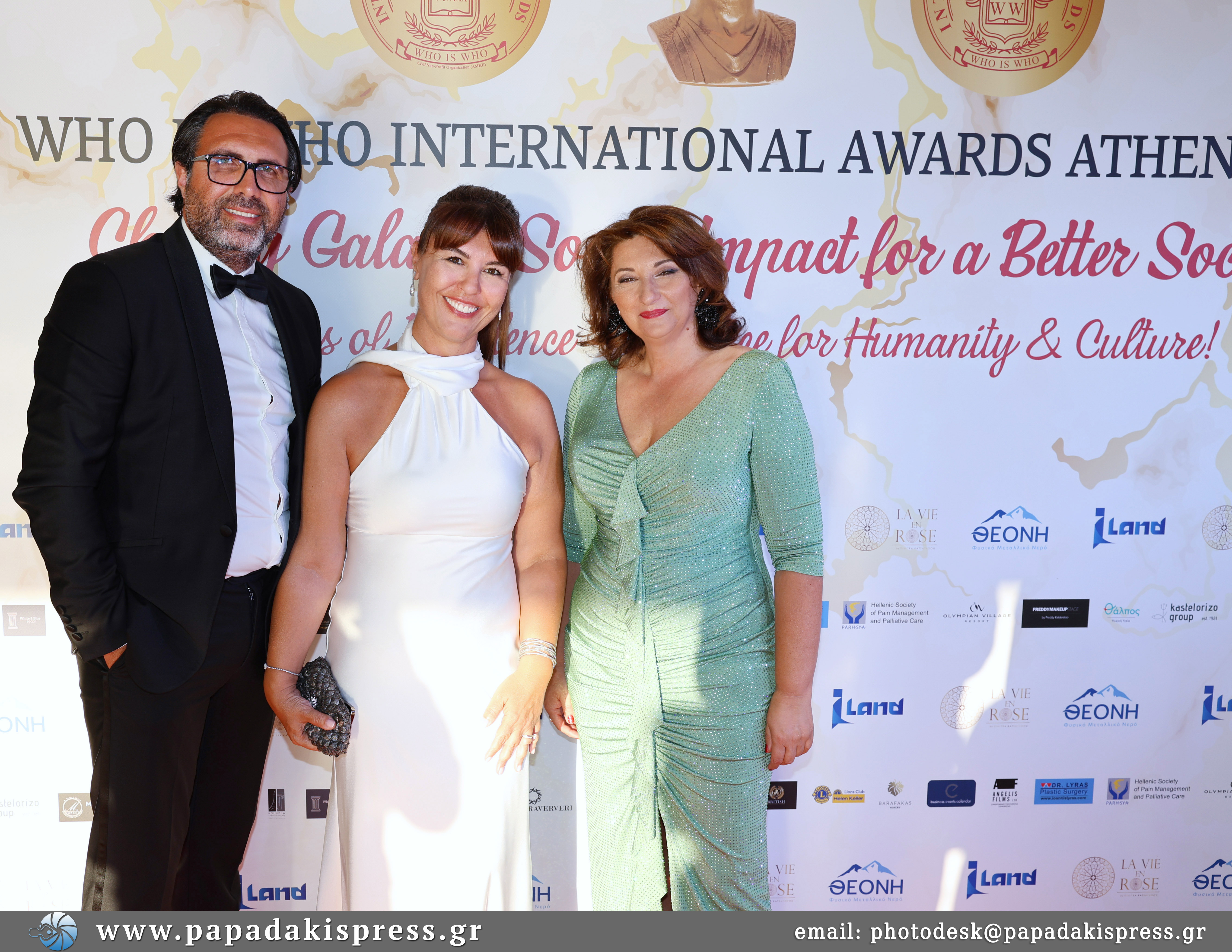 Leen Vandaele – World Eminent Woman of Golden Ratio Design &Philanthropy Lorena Baricalla – World Woman Leader in Performing Arts & Visionary Entertainment Creation Sir Prof. Gabriele Pao-Pei Andreoli – World Eminent Man in Ethical Innovation, Strategic Diplomacy & Human Advancement Massimo Pulcinelli – World Eminent Man in Business Excellence &Sports Entrepreneurship. Η απονομή συνοδεύτηκε από θερμά λόγια του Υφυπουργού, που εξήρε το ρόλο του θεσμού στη διεθνή πολιτιστική διπλωματία και τόνισε πως «η Ελλάδα παραμένει πηγή έμπνευσης όταν τιμά αυτούς που υπηρετούν τον άνθρωπο και τις αξίες». Την τελετή τίμησαν και οι Ambassadors των Who is Who International Awards, προσωπικότητες διεθνούς εμβέλειας και κύρους που ενσαρκώνουν τις αξίες του θεσμού και λειτουργούν ως πολυεθνικοί φορείς διάδοσης του μηνύματος της ηθικής αριστείας. Καθένας από τους παρακάτω απέδωσε τιμητικό βραβείο, προσδίδοντας διεθνή κύρος, συμβολισμό και συναισθηματικό βάθος στις απονομές: Δρ. Ιωάννης Χουρσαλάς, Ελένη Ιόλα, Martin Carlos Cosme, Sara Abbas, Olga Mroz, Mario Diel
