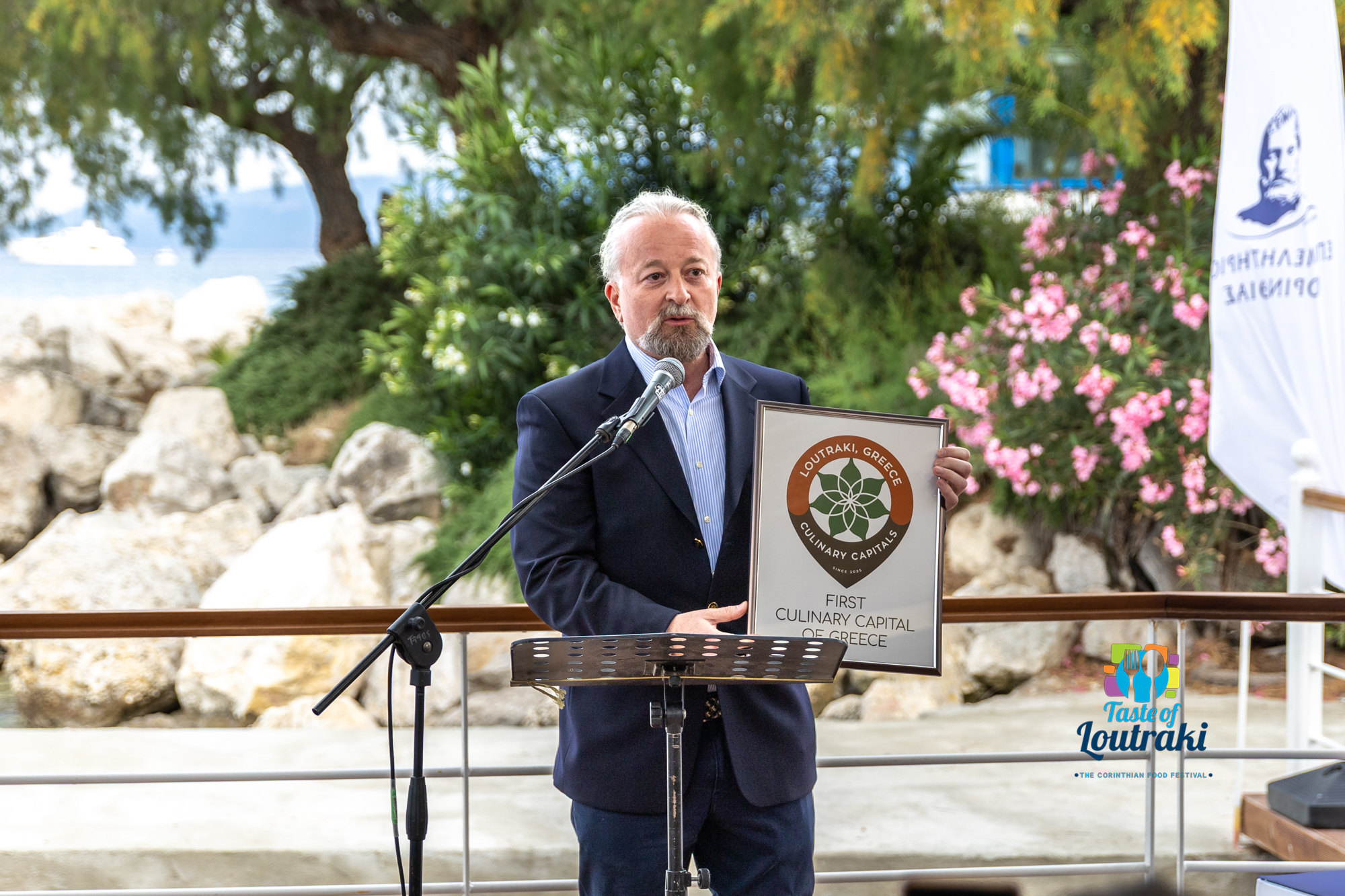 Κατά την επίσημη τελετή έναρξης, η οποία πραγματοποιήθηκε στον προαύλιο χώρο της ΑΕΔΙΚ, παρουσία εκπροσώπων του Δήμου, της Περιφέρειας Πελοποννήσου, του Επιμελητηρίου Κορινθίας και του Τουριστικού Οργανισμού Λουτρακίου (L.T.O), έγινε μια σημαντική ανακοίνωση. Ο Πρόεδρος του Συλλόγου Επισιτιστών Λουτρακίου, Γιάννης Κόντης, παρέλαβε την πιστοποίηση του τίτλου “Culinary Capital” εκ μέρους της πόλης του Λουτρακίου από τον διεθνώς αναγνωρισμένο οργανισμό World Food Travel Association, καθιστώντας το Λουτράκι την πρώτη πόλη στην Ελλάδα που λαμβάνει αυτή τη διάκριση.