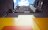 The building’s characteristic vibrant architectural features, the cobalt stairs and bright green suspended walkway for example, create a break between areas.