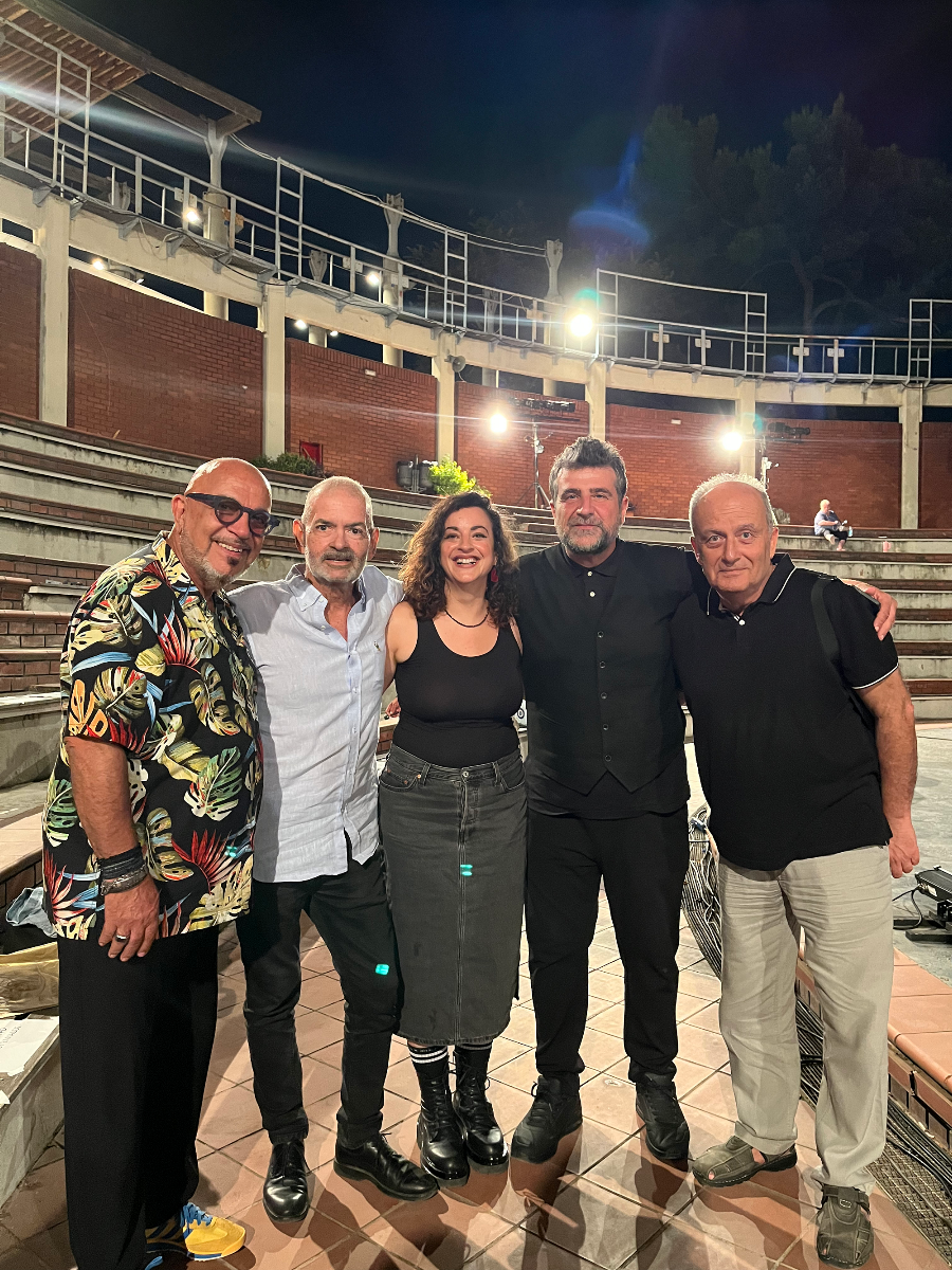 Ο Καλλιτεχνικός Διευθυντής του ΚΘΒΕ Αστέρης Πελτέκης μαζί με τον Γιάννη Ζουγανέλη (υπογράφει τη μουσική της παράστασης), τον Γιάννη Ρήγα (Εκτελών Καθήκοντα Αναπληρωτή Καλλιτεχνικού Διευθυντή), την Εύη Σαρμή (σκηνοθέτιδα της παράτασης) και τον Στάθη Παχίδη.