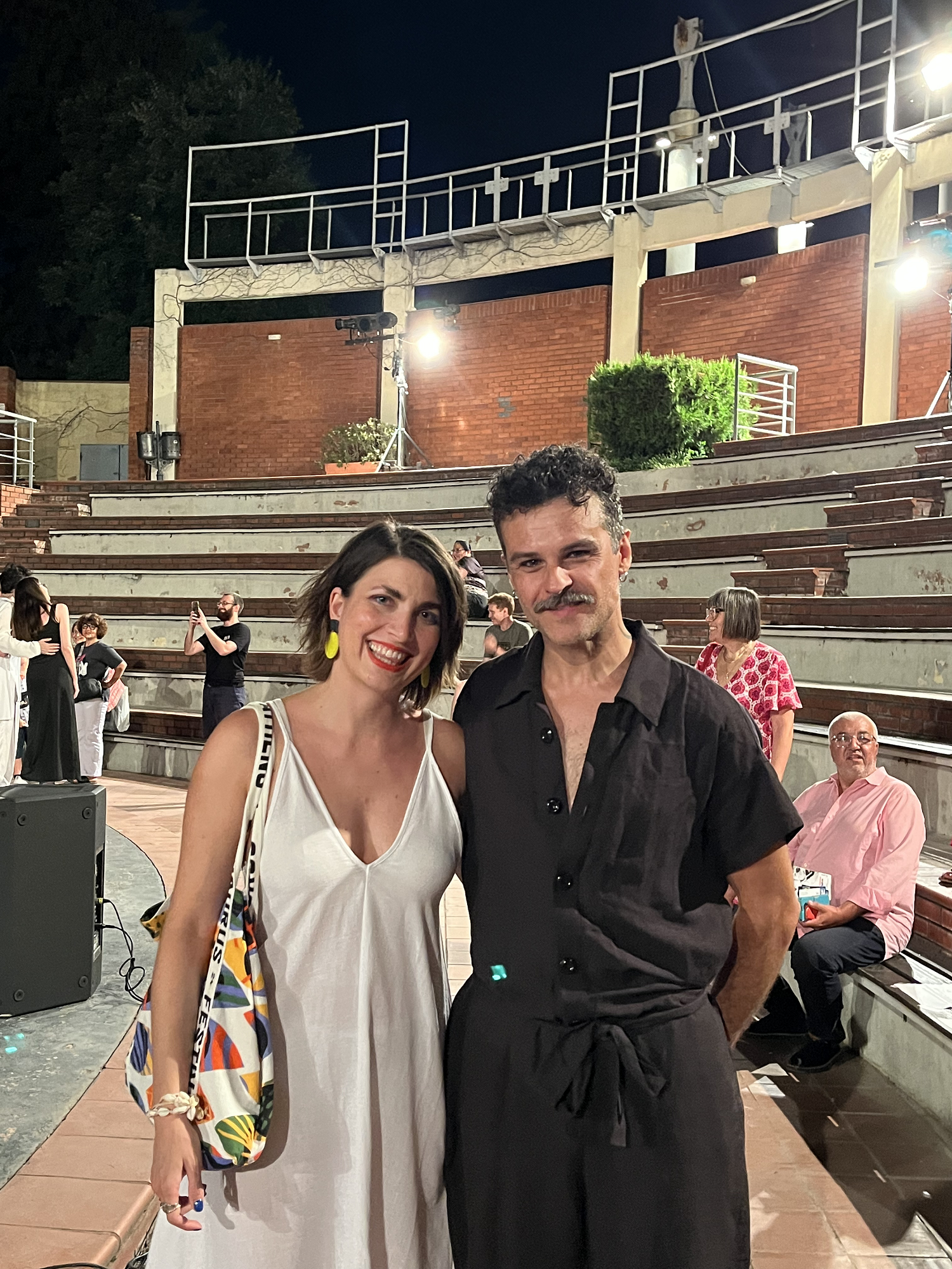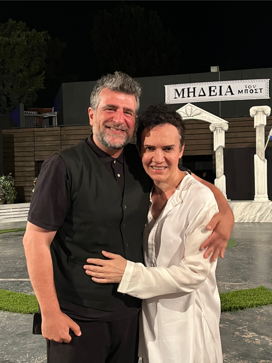 Ο Καλλιτεχνικός Διευθυντής του ΚΘΒΕ Αστέρης Πελτέκης μαζί με τον Παντελή Καναράκη που υποδύεται την «Μήδεια» στην παράσταση
