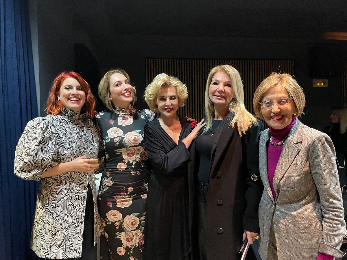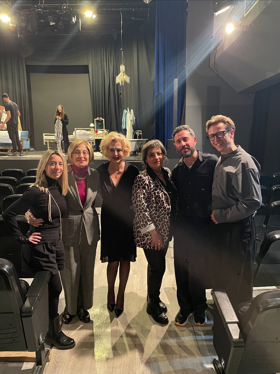 Η Πρόεδρος του ΚΘΒΕ Γιαννούλα Καρύμπαλη-Τσίπτσιου μαζί με την Αλεξάνδρα Παλαιολόγου (Μέριλιν Μονρόε), τη Ζιζή Συμεωνίδου και τις ηθοποιούς Χρυσή Μπαχτσεβάνη και Τατιάνα Μελίδου.