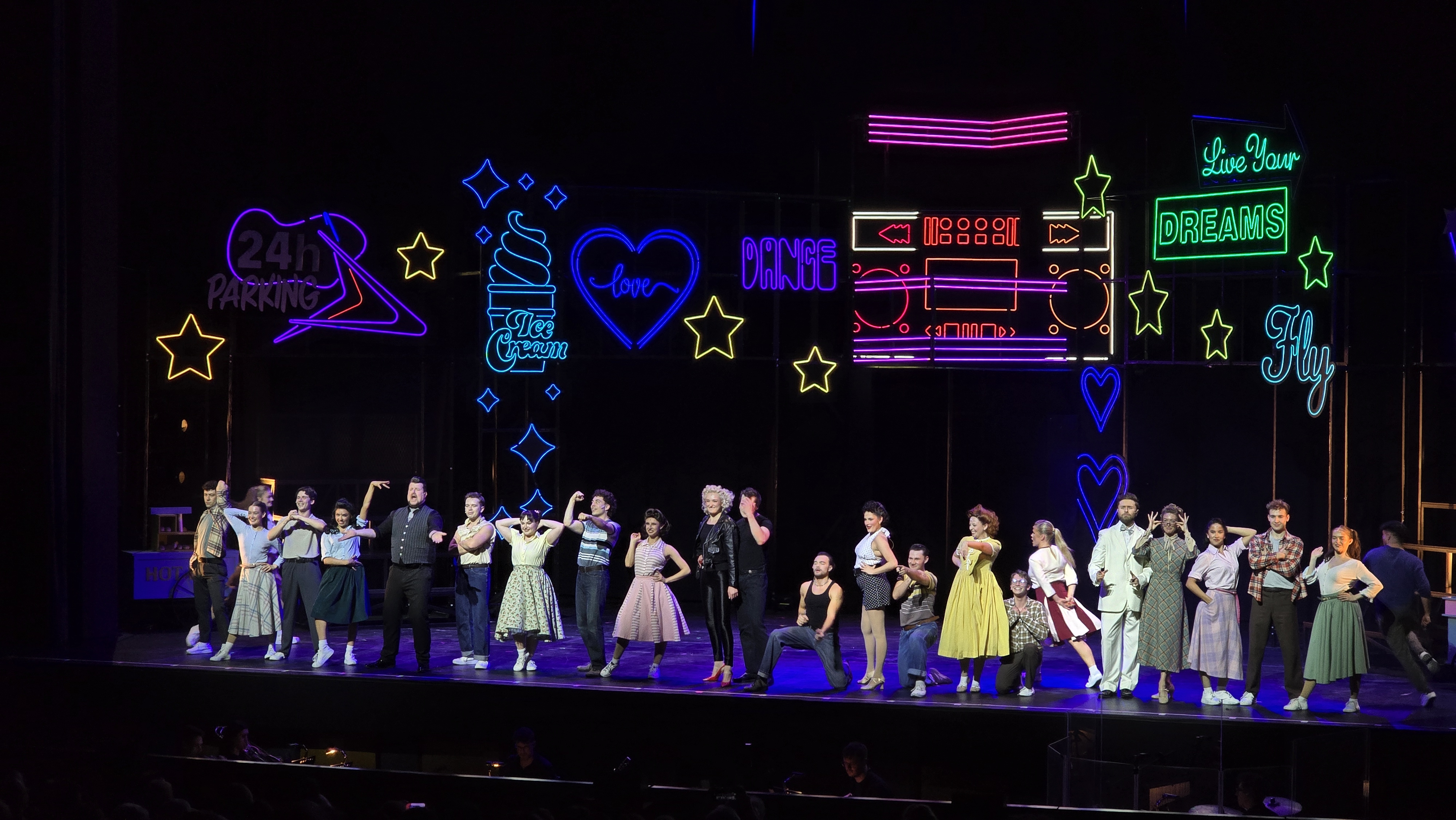 Το εμβληματικό love story της Σάντι και του Ντάνι ζωντάνεψε με φρεσκάδα και ένταση, ενώ οι διαχρονικές επιτυχίες όπως “You’re the One That I Want” και “Summer Nights” ξεσήκωσαν το κοινό, που δεν δίστασε να τραγουδήσει και να χορέψει από τη θέση του. Το αποκορύφωμα της βραδιάς ήρθε στο φινάλε, όταν η σκηνή μετατράπηκε σε ένα ξέφρενο dance floor, χαρίζοντας μια αξέχαστη εμπειρία.