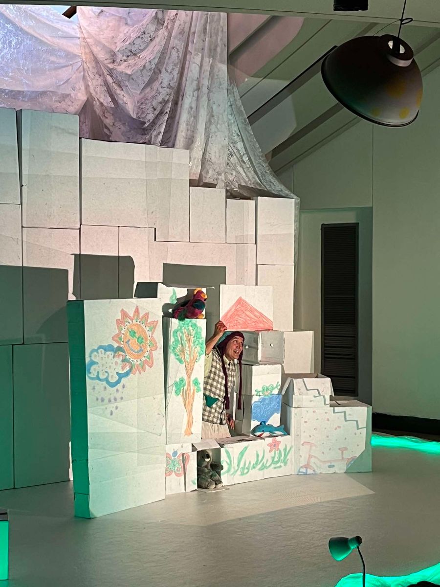 Ένα ανθρωπάκι βρίσκεται ανάμεσα σε λευκά χαρτόκουτα. Όταν προκύψει η ανάγκη να φτιάξει σπιτάκια για το ίδιο αλλά και τους φίλους του, ένας ολόκληρος κόσμος ξετυλίγεται μπροστά του, αφού με τη φαντασία του τα κουτιά αποκτούν χρώμα, μορφή, κίνηση. Η παράσταση υπενθυμίζει την ανάγκη κάθε πλάσματος να φτιάξει τη φωλίτσα του, να κατοικήσει το δικό του «σπίτι» και τελικά να νιώσει ασφάλεια στο καταφύγιο που πλάθει μέσα στον μεγάλο κόσμο.