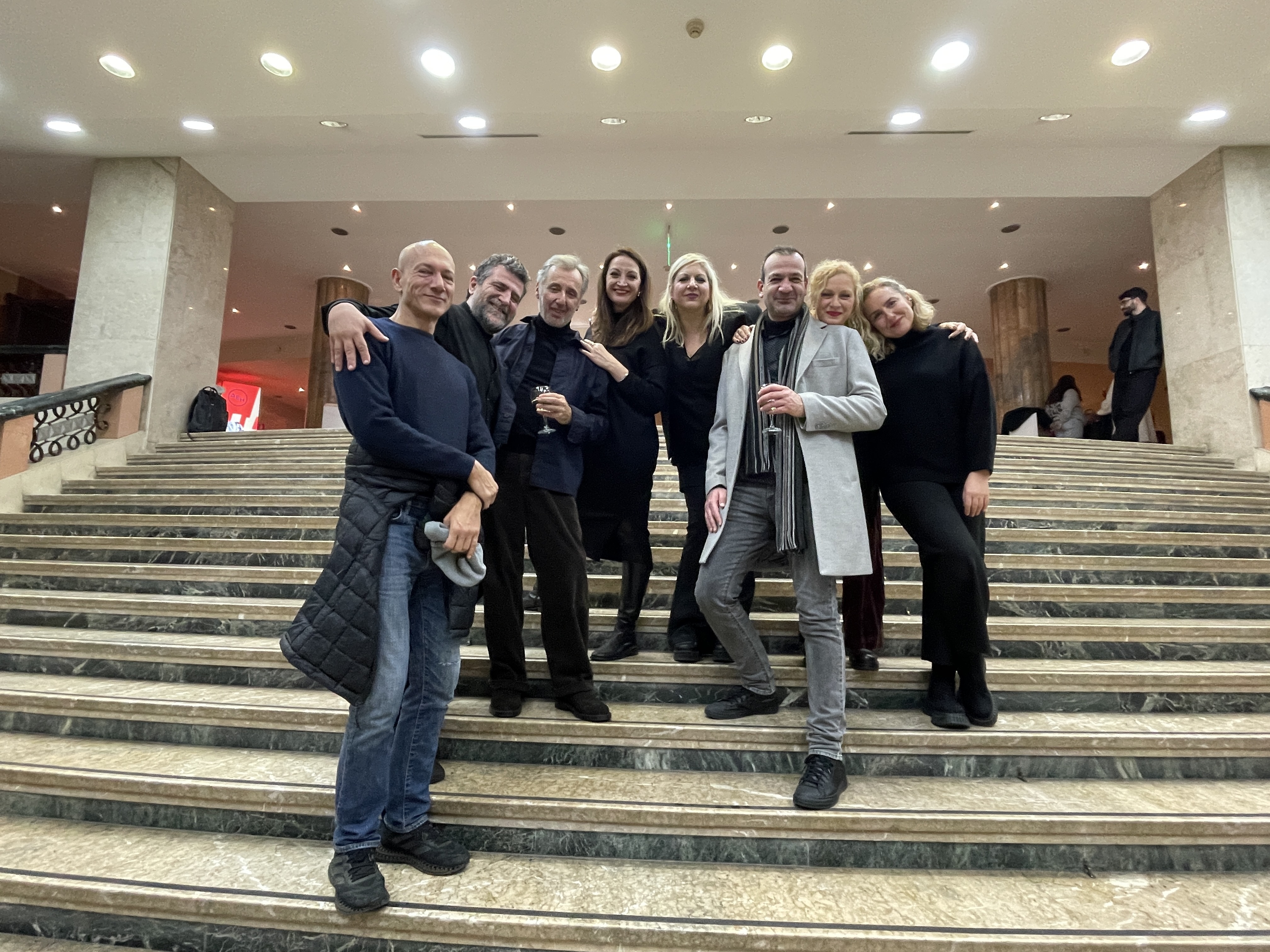 Ο Καλλιτεχνικός Διευθυντής του ΚΘΒΕ Αστέρης Πελτέκης μαζί με τους πρωταγωνιστές και συντελεστές της παράστασης.