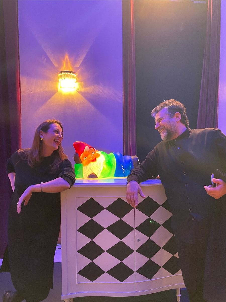 Ο Καλλιτεχνικός Διευθυντής του ΚΘΒΕ Αστέρης Πελτέκης μαζί με την Νικολέτα Φιλόσογλου η οποία υπογράφει τη σκηνοθεσία της παράστασης.
