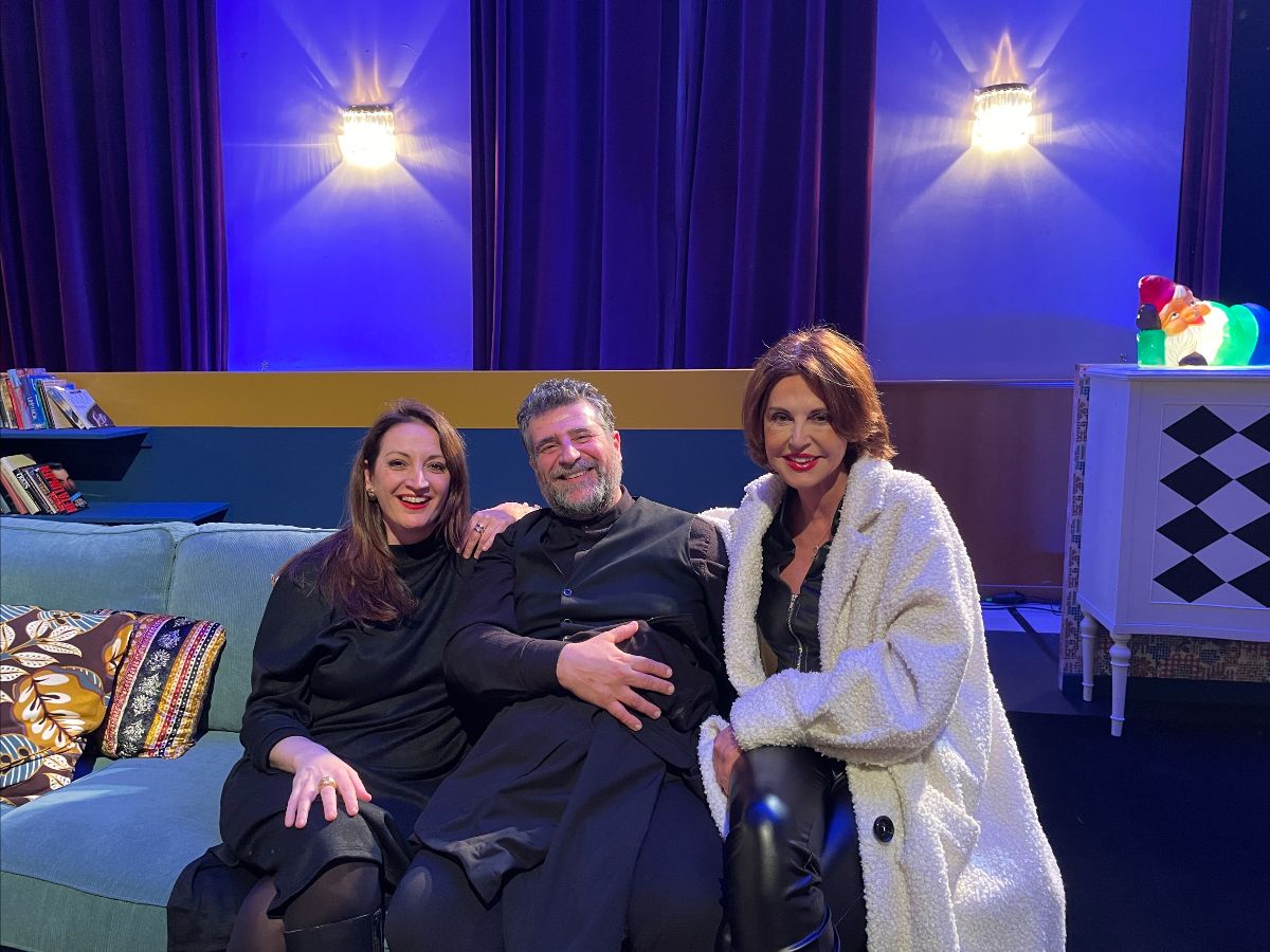 Ο Καλλιτεχνικός Διευθυντής του ΚΘΒΕ Αστέρης Πελτέκης μαζί με την Νικολέτα Φιλόσογλου η οποία υπογράφει τη σκηνοθεσία της παράστασης και την Αλεξάνδρα Παλαιολόγου.