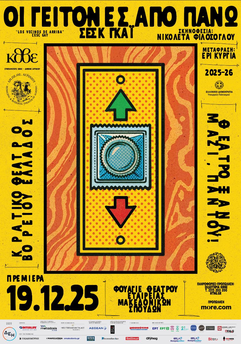 Στην πρεμιέρα της νέας παραγωγής του Κρατικού Θεάτρου Βορείου Ελλάδος, σε συμπαραγωγή με το ΔΗΠΕΘΕ Αγρινίου, «Οι γείτονες από πάνω» του Cesc Gay, σε σκηνοθεσία της Νικολέτας Φιλόσογλου, στο Φουαγιέ θεάτρου Εταιρείας Μακεδονικών Σπουδών, οι θεατές έγιναν μέρος της θεατρικής παρέας και παρακολούθησαν ένα έργο μετρημένο, τρυφερό, ευαίσθητο, πανέμορφα δομημένο και με εξαιρετικές ερμηνείες.