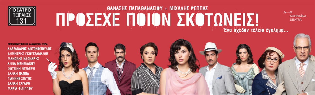 Το νέο έργο των Θανάση Παπαθανασίου και Μιχάλη Ρέππα «Πρόσεχε ποιον σκοτώνεις!», μία σπιρτόζικη ιστορία φόνων, γεμάτη από ίντριγκες, ανατροπές και το κομψό χιούμορ που ταιριάζει στο αστικό κλίμα της δεκαετίας του 1950, διαδραματίζεται σ΄ ένα νησί του Αργοσαρωνικού στις αρχές της δεκαετίας του ’50 και παρουσιάζεται στη μόνιμη θεατρική στέγη του πολυγραφότατου συγγραφικού διδύμου, το θέατρο Πειραιώς 131, τη σεζόν 2025-2026.