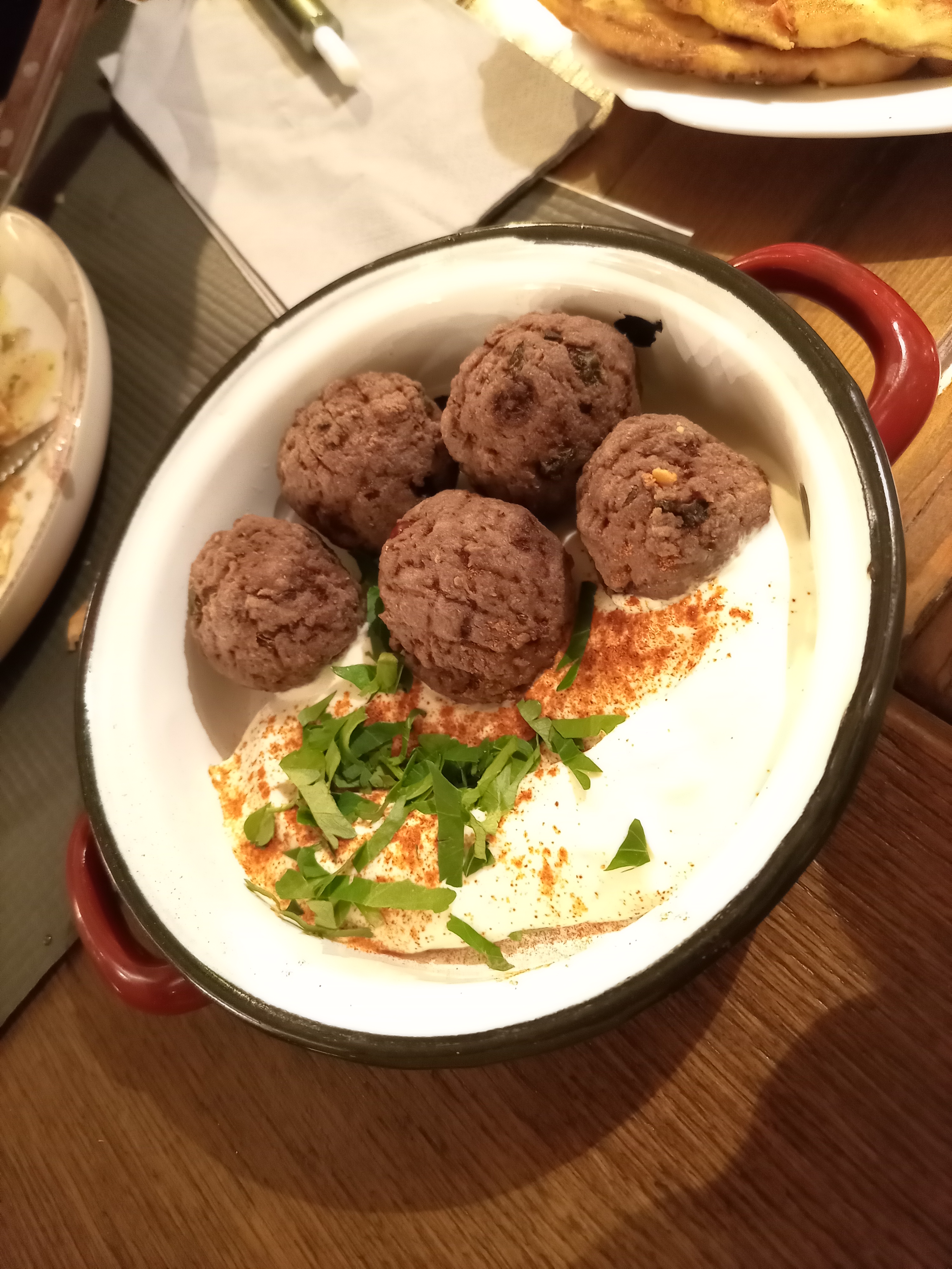 Οι λουκουμάδες φέτας τηγανισμένοι σε κουρκούτι, με βινεγκρέτ ροδιού και φιστίκι Αιγίνης, είναι το τραγανό μυστικό της κουζίνας, ενώ το καραμελωμένο κότσι που σιγοψήνεται για τέσσερις ώρες και το ψαρονέφρι με σος σόγιας και μανιτάρια, σερβιρισμένο με σπιτικό πουρέ πατάτας, αποδεικνύουν πως η υπομονή είναι το πιο νόστιμο συστατικό.