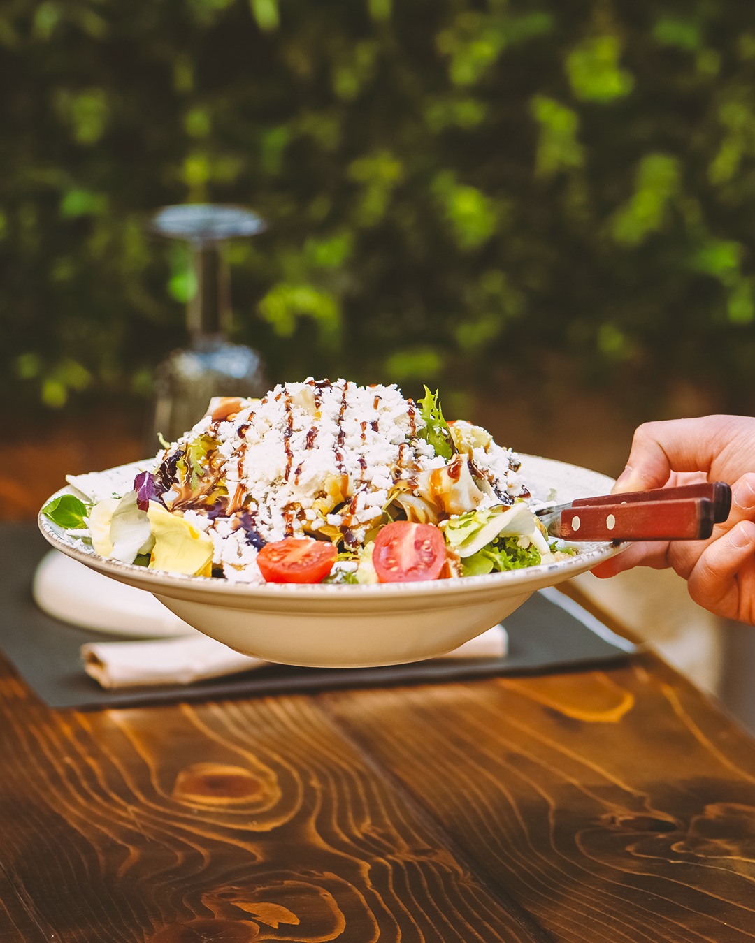 Στο τραπέζι έρχονται τα κολοκυθάκια sticks με τη σπιτική σκορδομαγιονέζα, τραγανά και ανάλαφρα. Δίπλα, η σαλάτα που φέρει το όνομα του μαγαζιού, η «Μπριγκάντα»: iceberg, baby ρόκα, βαλεριάνα, σπανάκι, μανούρι, καρύδι, αποξηραμένο σύκο και βινεγκρέτ μελιού, όλα σε τέλεια ισορροπία.
