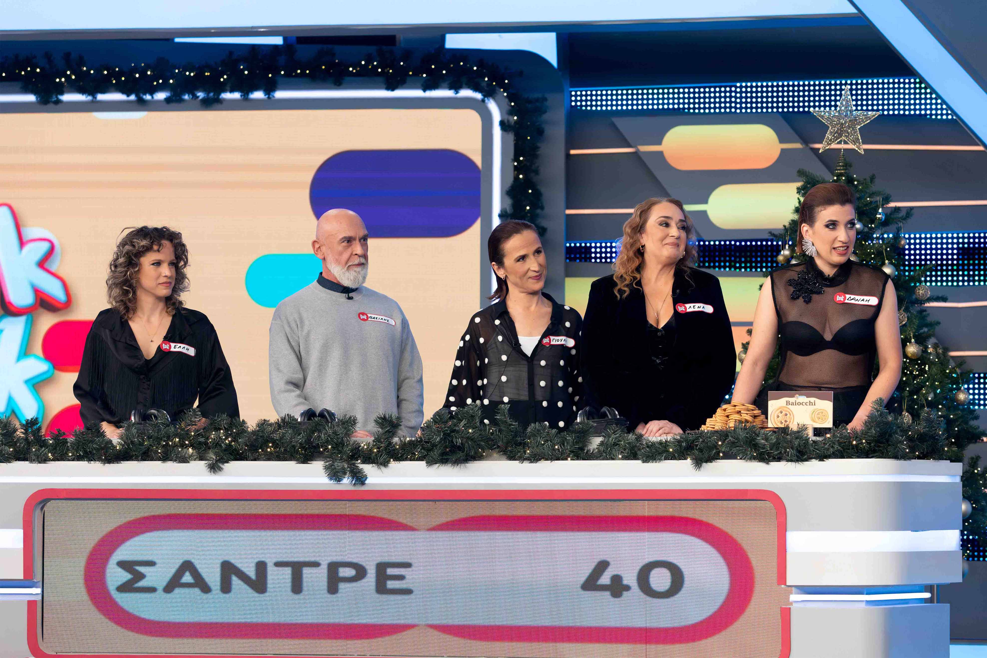 Από τη μία πλευρά του στούντιο, λοιπόν, είναι οι «ΣΑΝΤΡΕ» με τους Έλλη Τρίγκου, Δανάη Λουκάκη, Λένα Ουζουνίδου, Γιούλη Τσαγκαράκη και Βασίλη Μυριανθόπουλο.