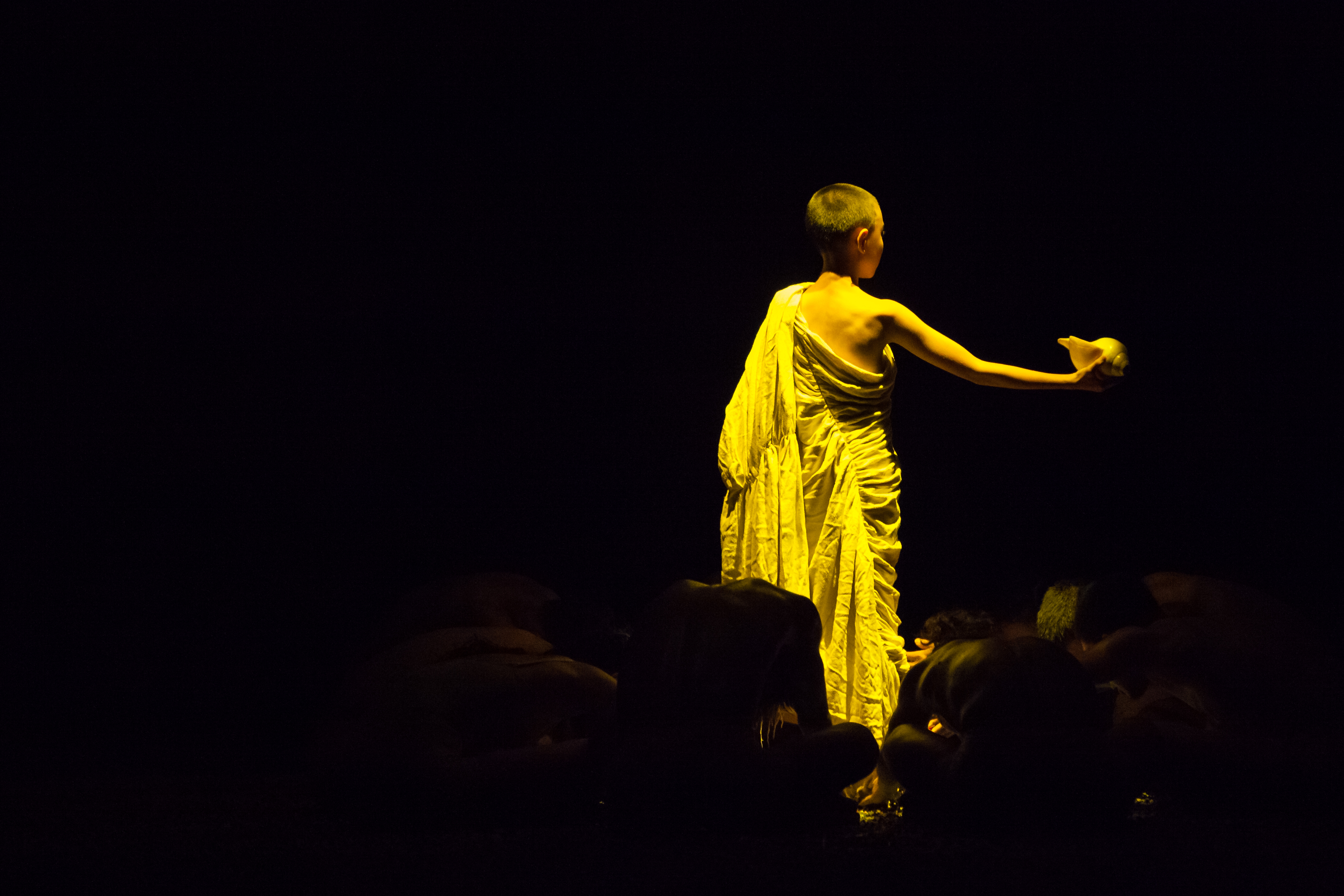 Η παράσταση ξεκινά πριν καν αρχίσει. Στο σκοτάδι. Με τους θεατές να μιλούν, να περιμένουν. Ένας χορευτής εμφανίζεται αθόρυβα ανάμεσά μας, κρατώντας θυμίαμα. Προχωρά αργά, αθέατος σχεδόν, και με το άρωμα του λιβανιού, η αίθουσα σιγά σιγά ησυχάζει. Ένα κύμα γαλήνης απλώνεται.