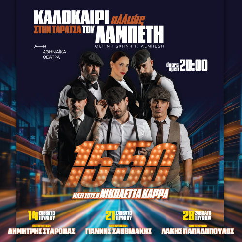 Τα καλοκαιρινά Σάββατα του Ιουνίου γεμίζουν ρυθμό, χιούμορ και ανατροπές στην Ταράτσα του Λαμπέτη! Οι 15 50, το αγαπημένο ροκ συγκρότημα της πόλης, και η εκρηκτική Νικολέττα Καρρά, ενώνουν τις δυνάμεις τους για ένα μουσικό πάρτι… αλλιώς!
