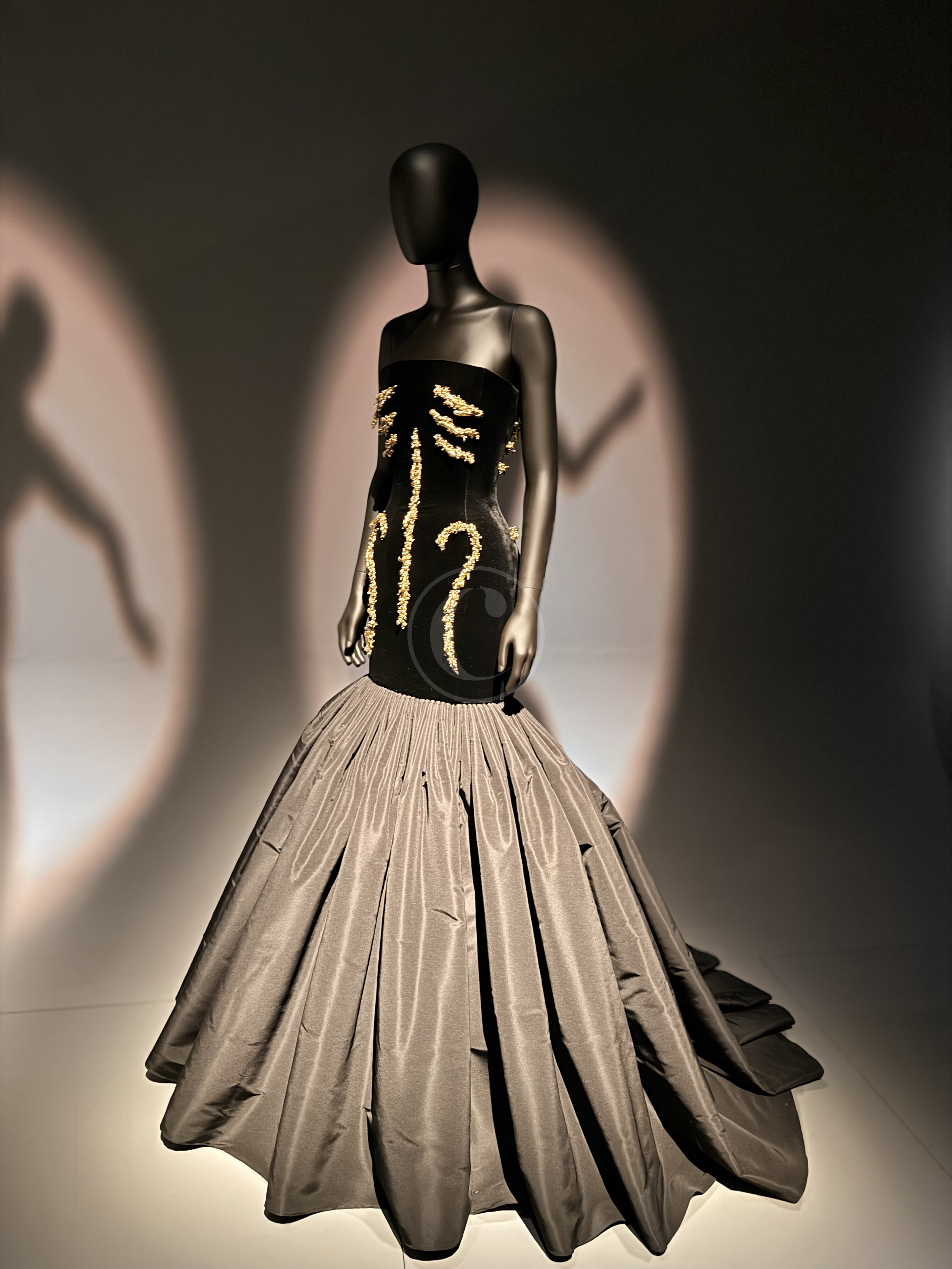 Ξεχωρίζουν τα κομμάτια που προέκυψαν από τη συνεργασία της με τον Salvador Dalí. Το Lobster Dress, το Skeleton Dress, τα καπέλα-αντικείμενα. Δεν παρουσιάζονται σαν “iconic στιγμές”, αλλά σαν παραδείγματα ενός τρόπου σκέψης: η μόδα μπορεί να είναι χιούμορ, πρόκληση, ακόμα και ειρωνεία.