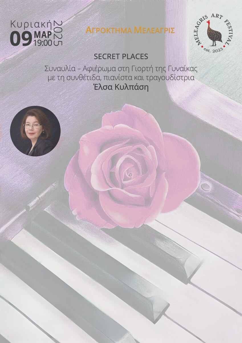 Το «Secret Places» υπόσχεται μια συγκινητική εμπειρία, όπου οι νότες αφηγούνται ιστορίες γεμάτες μυστήριο, νοσταλγία και συναίσθημα. Το Αγρόκτημα Μελεαγρίς θα είναι ανοικτό μια ώρα πριν την έναρξη της συναυλίας για να καλωσορίσει όποιον θέλει να το επισκεφθεί νωρίτερα.