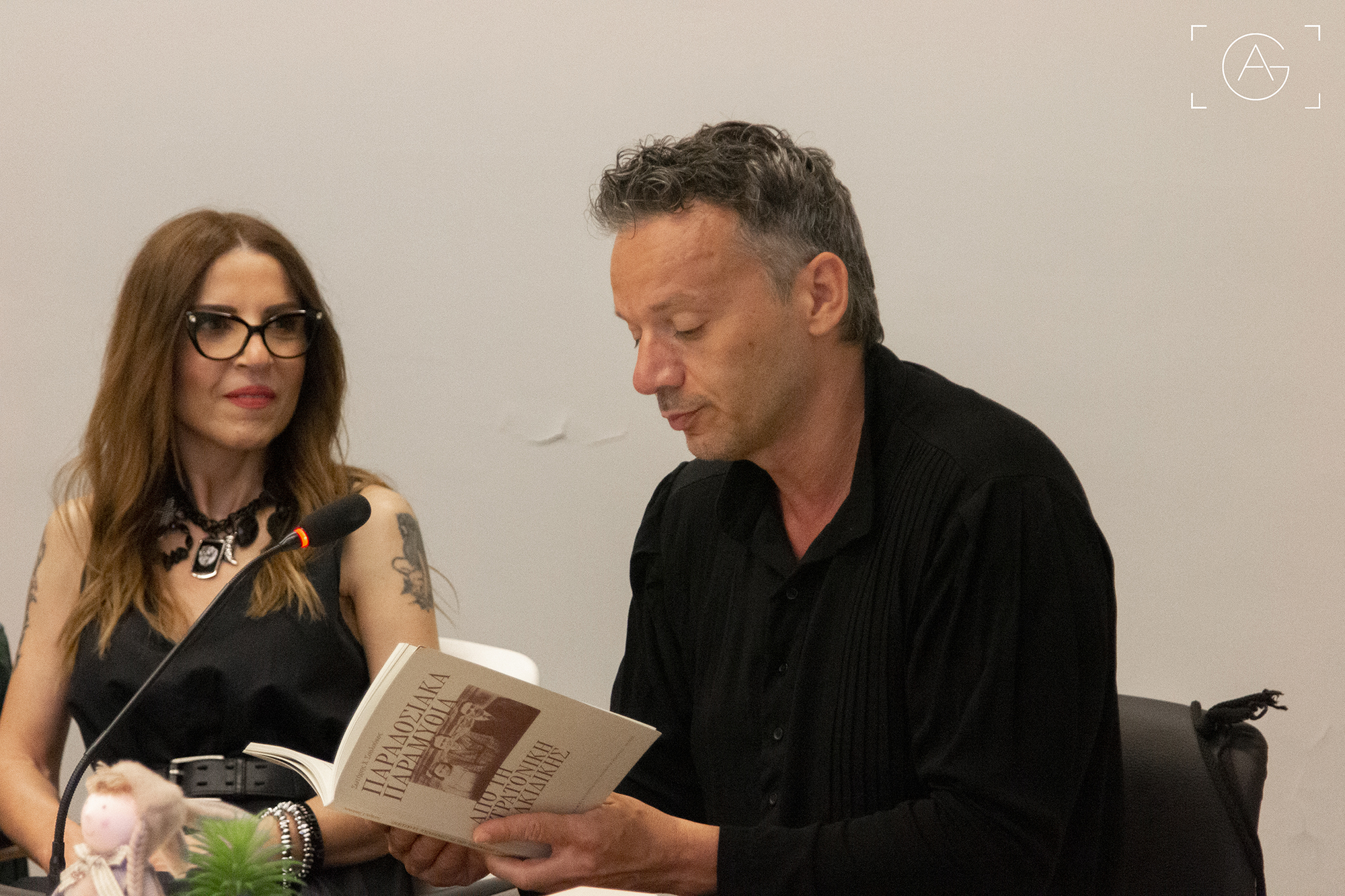 Την εκδήλωση άνοιξε ο ταλαντούχος τραγουδιστής, μουσικός και ηθοποιός Νίκος Κύρτσος, ο οποίος μας έβαλε κατευθείαν στον μαγικό κόσμο των παραμυθιών διαβάζοντας το έμμετρο παραμύθι «Ο γάιδαρος και ο λύκος».