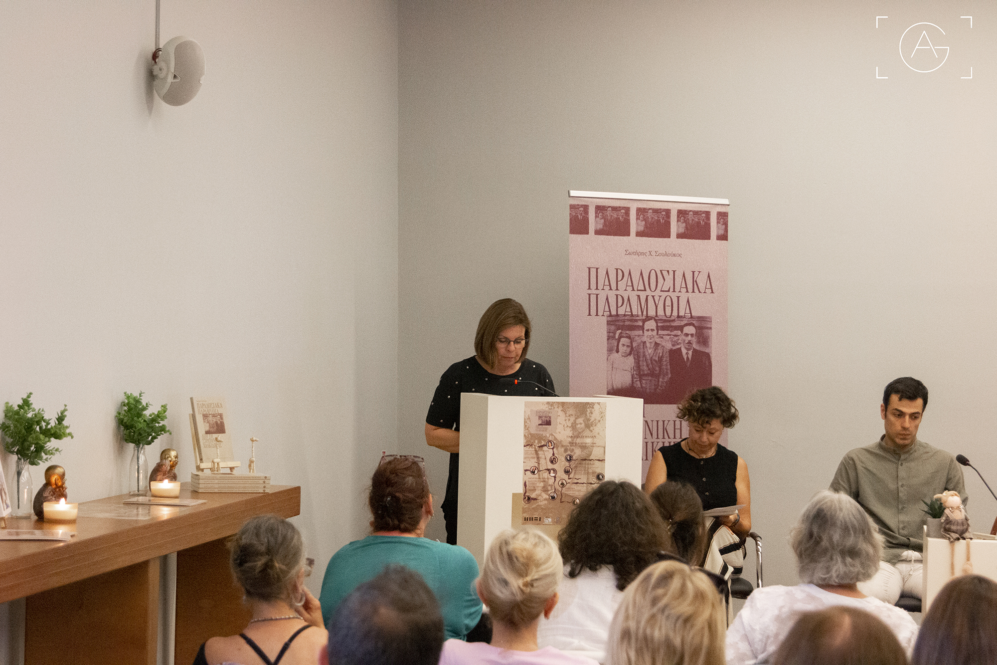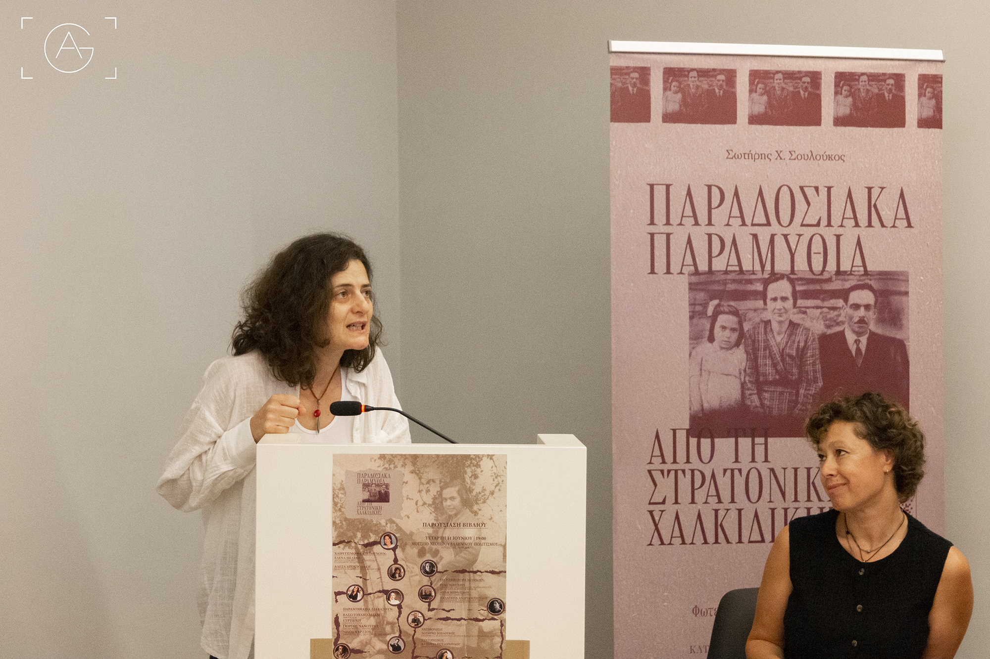 Στην συνέχεια χαιρετισμό απεύθυναν η Διευθύντρια του Μουσείου Νεότερου Ελληνικού Πολιτισμού, Έλενα Μελίδη, η εκδότρια των Εκδόσεων Καλειδοσκόπιο, Αλέξα Αποστολάκη, και η αναπληρώτρια Προϊσταμένη Διεύθυνσης του ΛΕΜΜ-Θ, Ελένη Μπίντση, οι οποίες ανέδειξαν με τις ομιλίες τους την αξία της καταγραφής και διάσωσης της προφορικής παράδοσης, καθώς και την ανθρωπολογική διάσταση του έργου.