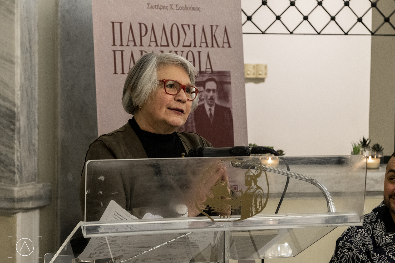 Η εκδότρια των Εκδόσεων Καλειδοσκόπιο Αλέξα Αποστολάκη (φωτό επάνω), άνοιξε την εκδήλωση με ένα θερμό χαιρετισμό, ενώ ακολούθησαν ομιλίες από την Ελένη Μπίντση, Αναπληρώτρια Προϊσταμένη Διεύθυνσης του ΛΕΜΜ-Θ, και την Αίγλη Μπρούσκου, Κοινωνική Ανθρωπολόγο, οι οποίες ανέδειξαν την αξία της καταγραφής και διάσωσης της προφορικής παράδοσης, καθώς και την ανθρωπολογική διάσταση του έργου.