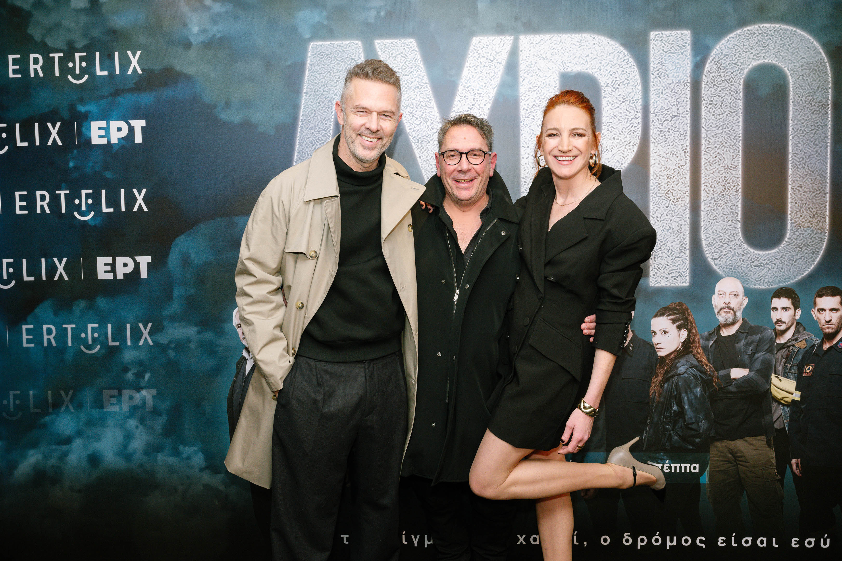 Ο πρόεδρος της ΕΡΤ Γιάννης Παπαδόπουλος και ο διευθύνων σύμβουλος Κωνσταντίνος Παπαβασιλείου, με την πρωταγωνίστρια της σειράς Στεφανία Γουλιώτη