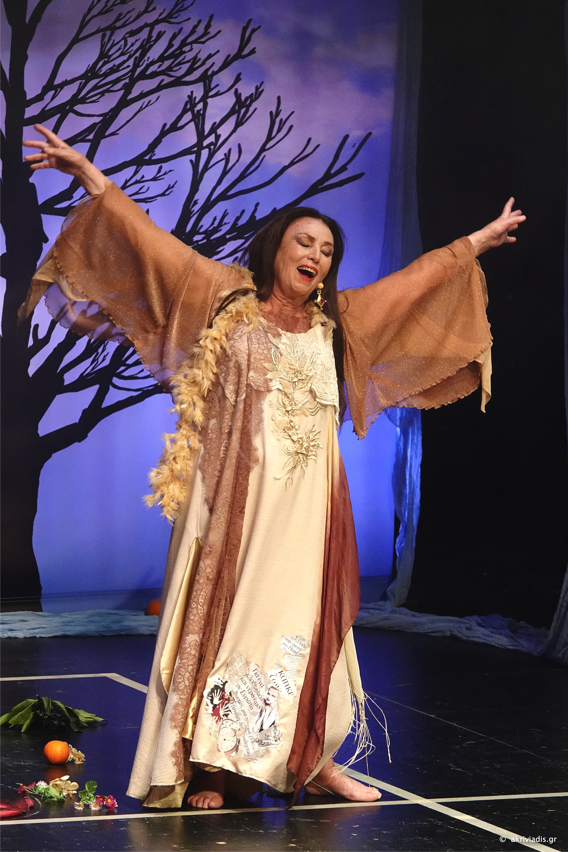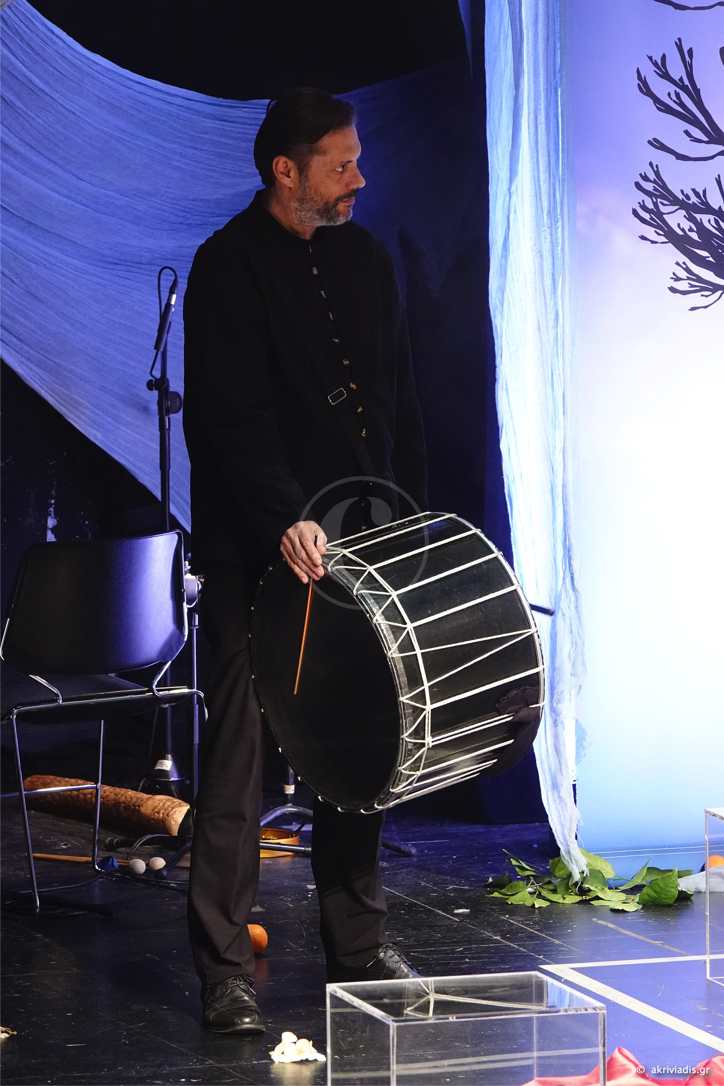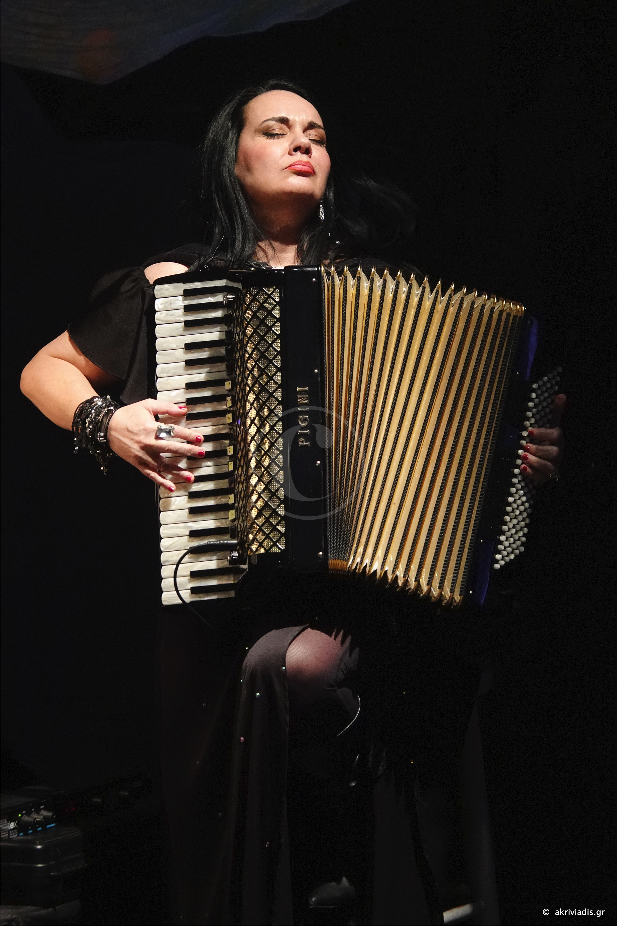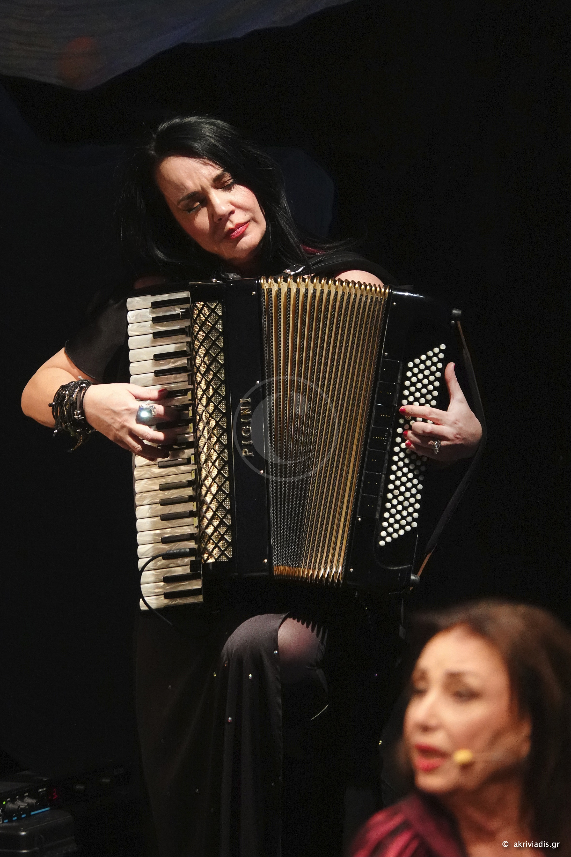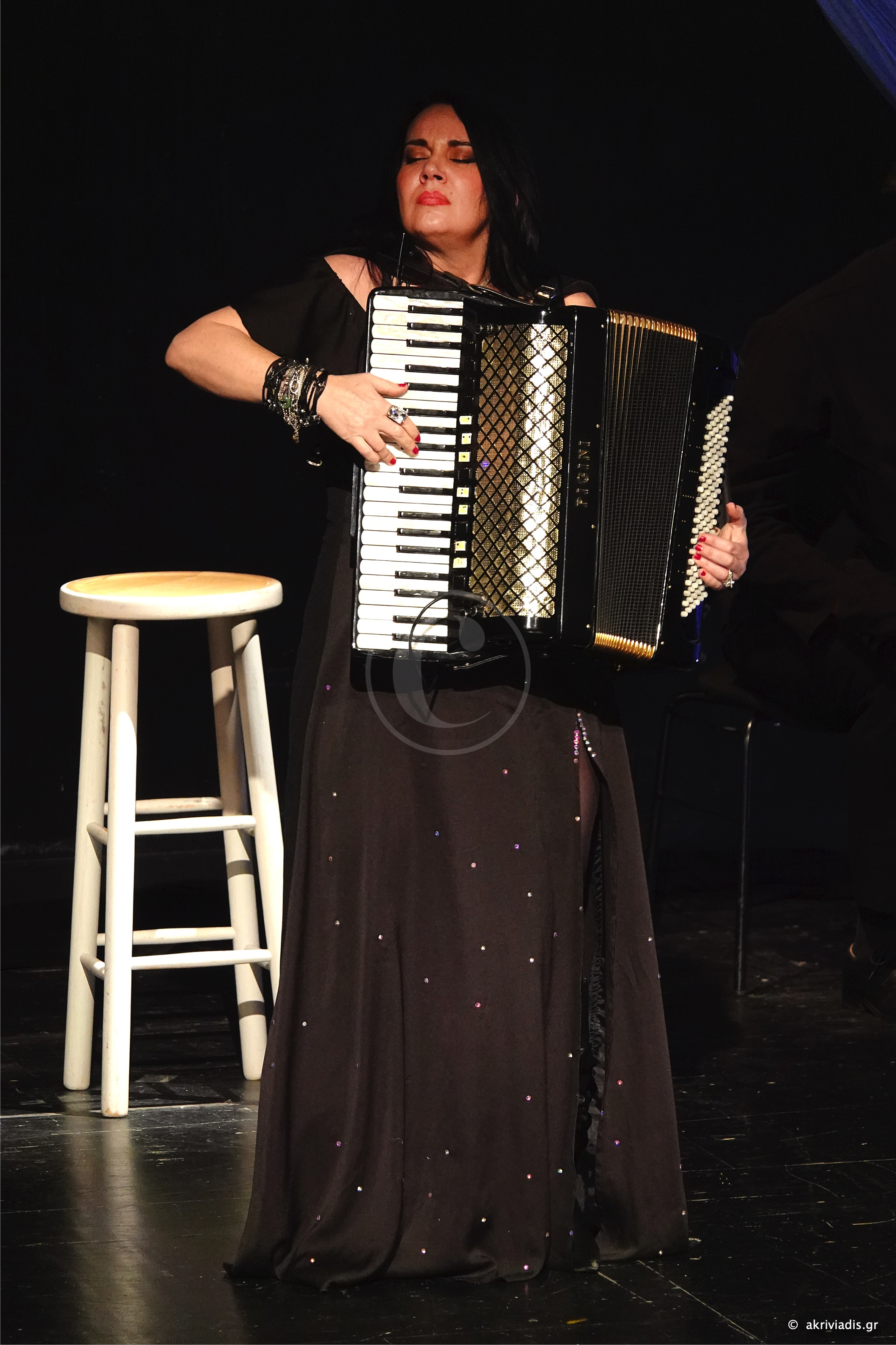 Η Ζωή Τηγανούρια, ταλαντούχα βιρτουόζος του ακορντεόν, υπογράφει την πρωτότυπη μουσική και εμφανίστηκε επί σκηνής μαζί με τον Στέλιο Γενεράλη στα κρουστά. Μέσα από μοιρολόγια, τραγούδια έρωτα, ύμνους αντίστασης και έναν συγκλονιστικό τελικό ύμνο στην Ειρήνη, λόγος και μουσική ενώθηκαν σε ένα συναισθηματικό ταξίδι γεμάτο ένταση, συγκίνηση, θυμό, χιούμορ, τρυφερότητα και πάθος. Στην παράσταση ακούστηκαν σημαντικά παραδοσιακά τραγούδια, όπως “Ξένος εδώ, ξένος εκεί” και “Τι έχεις καημένη κόρη”, τα οποία ερμήνευσε η Γεωργία Ζώη, προσδίδοντας μια βαθιά λαϊκή και συλλογική μνήμη στο μονόλογο.