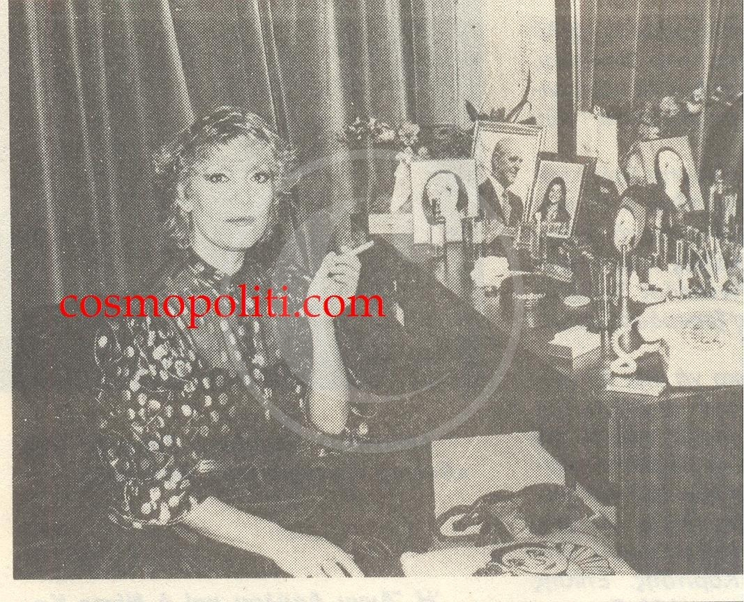 τσιγαράκι πριν ξεκινήσει το πρόγραμμα. Ανάμεσα στα διάφορα αντικείμενα που υπάρχουν μπροστά στον καθρέφτη της, δεσπόζει η κορνίζα με την φωτογραφία του Κωνσταντίνου Καραμανλή.