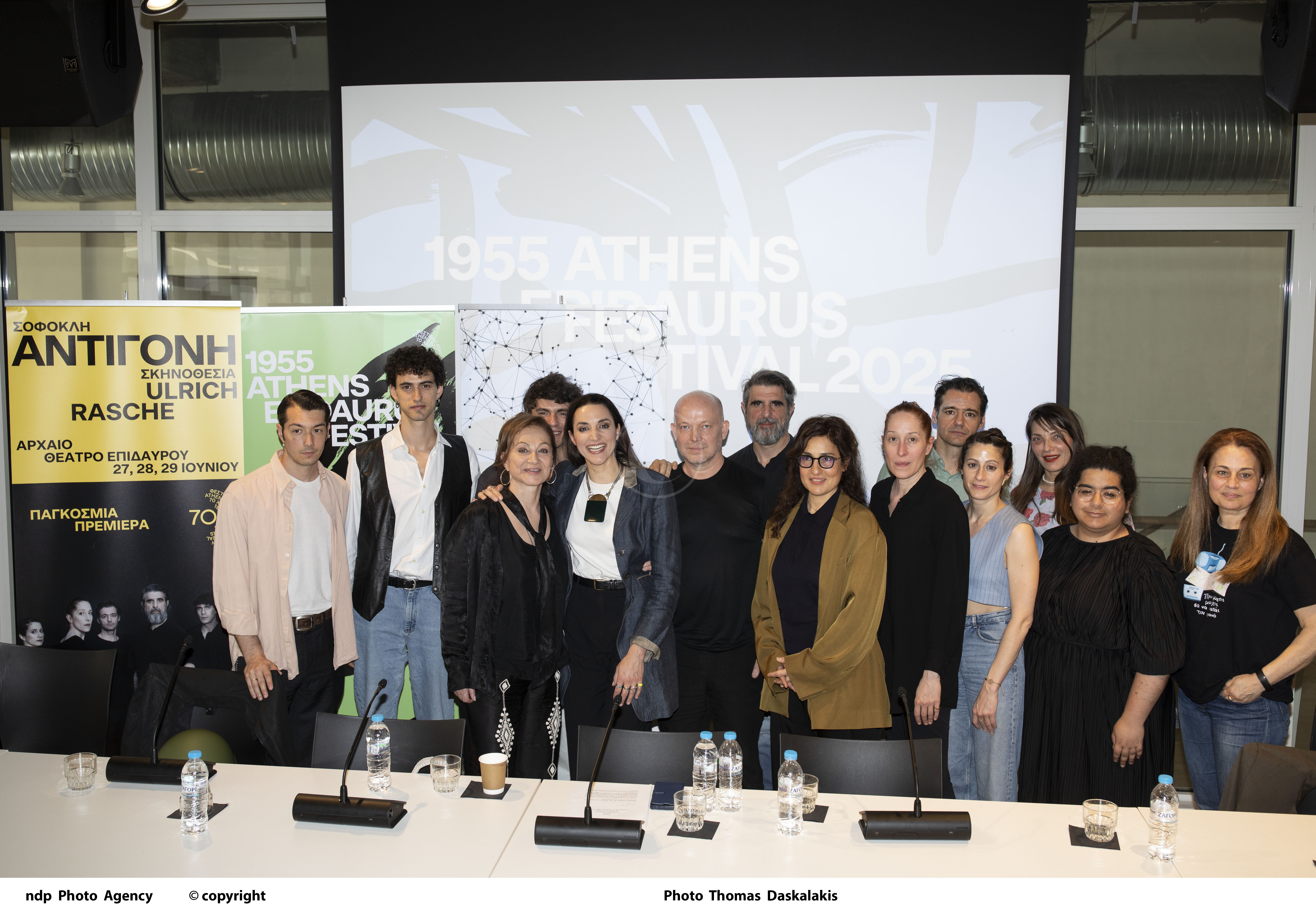 Στη Συνέντευξη Τύπου που παραχώρησαν στο Ινστιτούτο Goethe, η Καλλιτεχνική Διευθύντρια του Φεστιβάλ Αθηνών Επιδαύρου Κατερίνα Ευαγγελάτου και η Καλλιτεχνική Διευθύντρια του Εθνικού Θεάτρου Αργυρώ Χιώτη, παρουσία του Ούλριχ Ράσε, του θιάσου και της δημιουργικής ομάδας, οι δημοσιογράφοι είχαν την ευκαιρία να έρθουν σε μια πρώτη επαφή με τον κόσμο της Αντιγόνης του Γερμανού σκηνοθέτη.