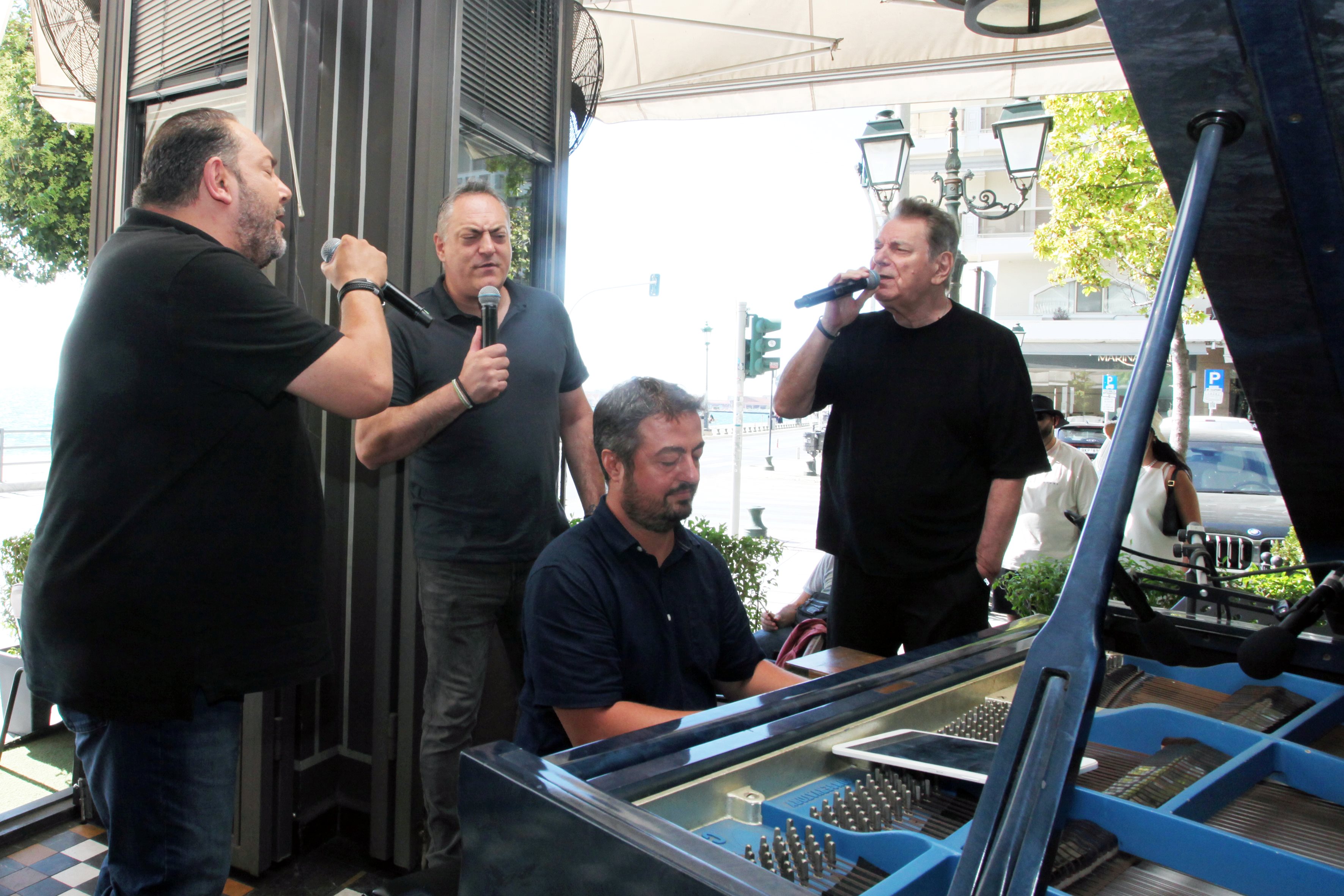 Τραγουδούν εναλλάξ ανά δύο, τα παιδιά του Στράτου Διονυσίου, ο Άγγελος, ο Στέλιος και ο Διαμαντής.