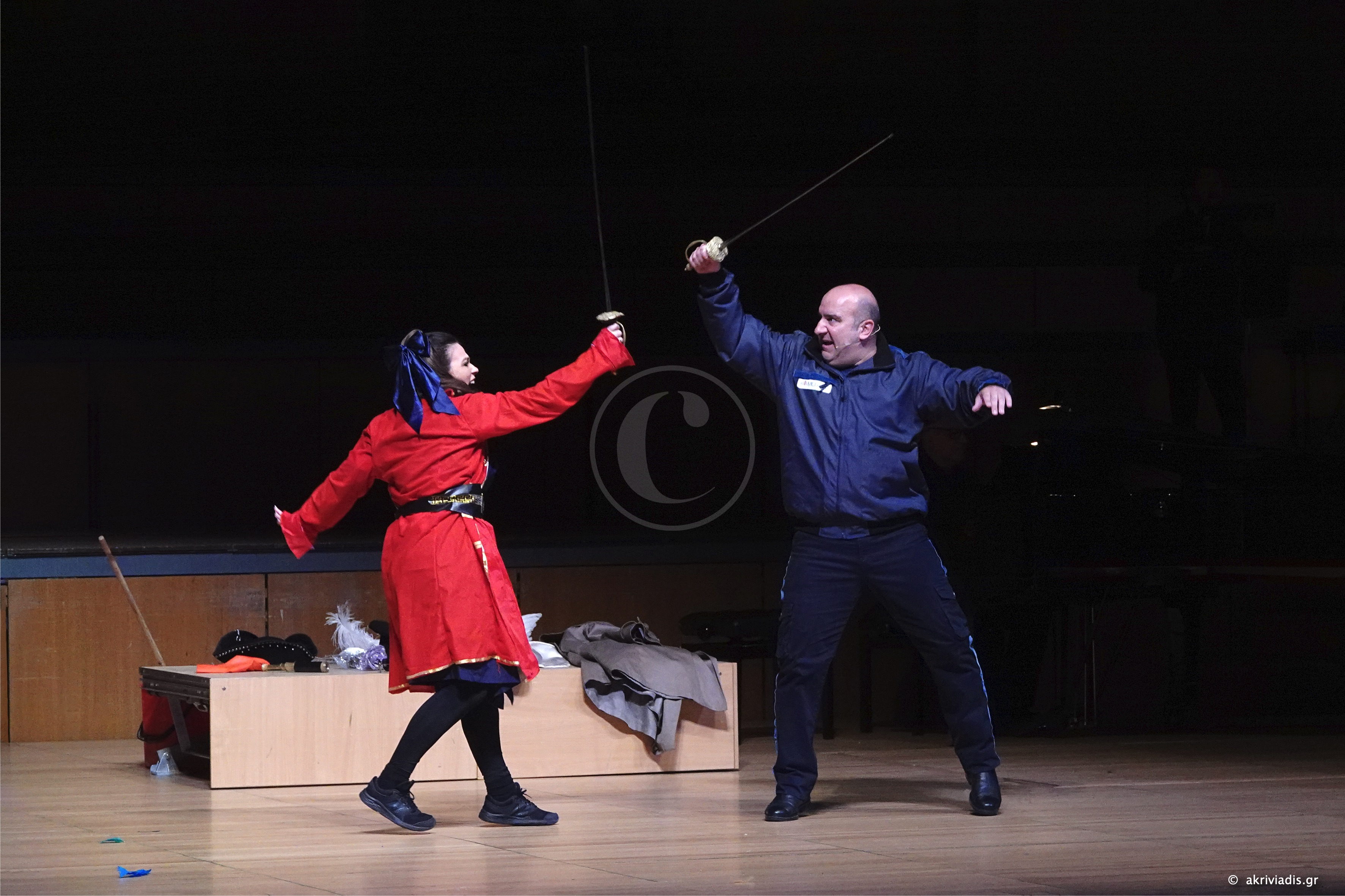 H Άννα-Μόσχα Καμπόσου (σκηνοθεσία, θεατρικά κείμενα) και ο Γιώργος Χατζής συνέβαλλαν, με ανεξάντλητη χιουμοριστική διάθεση, στην εξέλιξη της ιστορίας, ερμηνεύοντας κωμικούς ρόλους σε πρωτότυπα κείμενα, ενώ ταυτόχρονα συνομιλούσαν με τους μουσικούς επί σκηνής αλλά και με τους νεαρούς μουσικόφιλους της Αίθουσας Χρήστος Λαμπράκης, η οποία διαθέτει εξαιρετική ακουστική υψηλών προδιαγραφών.