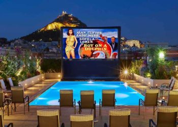 Summer nights for film lovers by the atmospheric pool of the Hotel Grande Bretagne