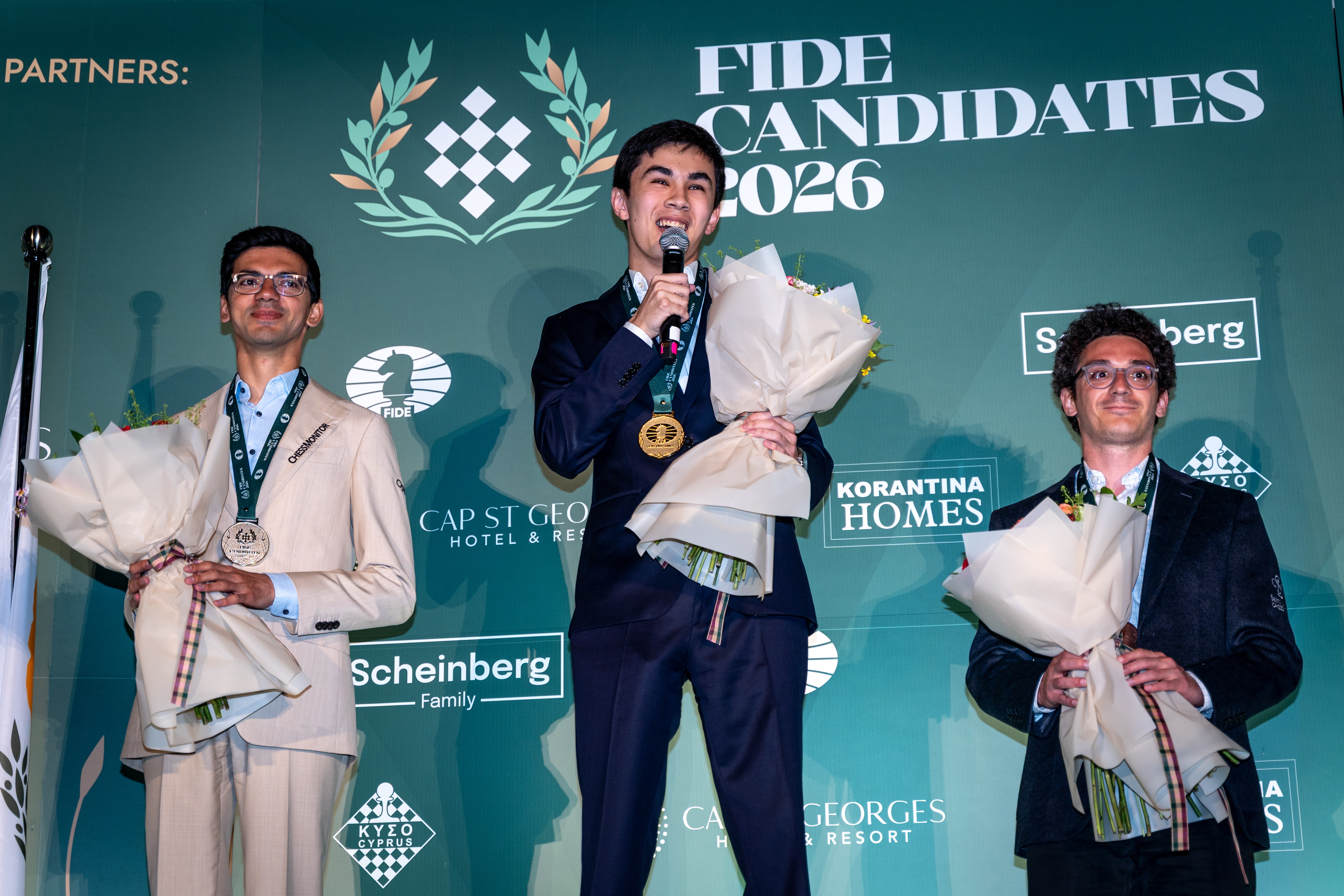 Με μια εντυπωσιακή και συγκινητική τελετή λήξης, που πραγματοποιήθηκε στο μοναδικό περιβάλλον του “Cap St. Georges Hotel & Resort”, στο Ακρωτήρι Αγ. Γεωργίου στην Πέγεια της Πάφου, ολοκληρώθηκε το “FIDE Candidates Tournament 2026”, η σημαντικότερη και πιο καθοριστική διοργάνωση στο δρόμο του Παγκόσμιου Πρωταθλήματος Σκακιού, που οδηγεί στη διεκδίκηση του Παγκόσμιου Τίτλου. Σύμφωνα με την επίσημη ανακοίνωση της “FIDE”: η βραδιά αποτέλεσε έναν ιδιαίτερα συναισθηματικό και εορταστικό αποχαιρετισμό σε μια ιστορική διοργάνωση, με έντονο κυπριακό χαρακτήρα.