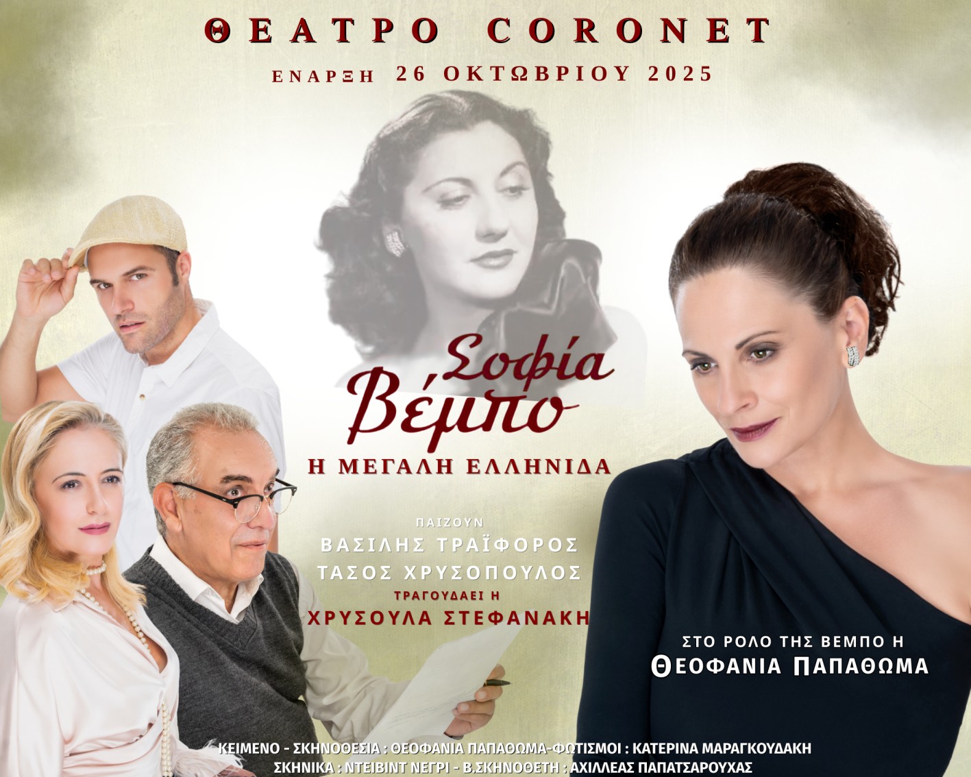 «Αγαπώ και σέβομαι τη Σοφία Βέμπο βαθιά! Ήθελα λοιπόν να κάνω μια παράσταση για να την τιμήσω, να τιμήσω τη μεγάλη Ελληνίδα, τη μεγάλη Γυναίκα, για τη γενναιοδωρία της και την προσφορά της στην Ελλάδα και στους Έλληνες, για όλη της την αγάπη. Για να τη θυμούνται οι παλιοί και να μαθαίνουν οι νέοι. Γιατί τα σύμβολα πρέπει να ζουν αιώνια και να μας καθοδηγούν. Ήθελα να κάνω μια παράσταση που να της αξίζει, να είναι ισάξια της προσφοράς της. Να ζήσουμε κάποιες στιγμές από τη ζωή της και το μεγαλείο της. Να κλάψουμε, να γελάσουμε και να θυμηθούμε τα ιστορικά γεγονότα που σημάδεψαν τη χώρα μας. Να κάνουμε ένα ταξίδι στην ιστορία μας, στον πολιτισμό και στην τέχνη μέσα από τα μάτια της μεγάλης αυτής καλλιτέχνιδος». Τα παραπάνω λόγια ανήκουν στην Θεοφανία Παπαθωμά, η οποία υποδύεται την Σοφία Βέμπο στη μουσικοθεατρική παράσταση “Σοφία Βέμπο – H Mεγάλη Ελληνίδα” κάθε Κυριακή και Τετάρτη στις 20.00 στο Θέατρο Coronet. Πρόκειται για μία παράσταση που αναβιώνει τη ζωή της Σοφίας Βέμπο και τα τραγούδια της -τα οποία τραγουδάει η Χρυσούλα Στεφανάκη- και διατρέχει τα σημαντικότερα γεγονότα της ζωής της και τα ωραιότερα τραγούδια της, με ζωντανή ορχήστρα επί σκηνής και αρχειακές εικόνες και βίντεο που μας θυμίζουν τις ιστορικές στιγμές που σημάδεψαν τη χώρα μας. Δίπλα στην Θεοφανία Παπαθωμά, ο Βασίλης Τραϊφόρος υποδύεται τον θείο του και σύζυγο της Βέμπο, Μίμη Τραϊφόρο και ο Τάσος Χρυσόπουλος τον αδελφό της, Τζώρτζη Μπέμπο. Το κείμενο και τη σκηνοθεσία έχει αναλάβει με ιδιαίτερη ευαισθησία η Θεοφανία Παπαθωμά και αξίζει να δείτε αυτή την παράσταση-εμπειρία που ξυπνά μνήμες και τιμά την αξεπέραστη μορφή της Σοφίας Βέμπο. Για την Βέμπο, την παράσταση, για το θέατρο στην εποχή μας και για πολλά άλλα, η Θεοφανία Παπαθωμά μιλά στην αποκλειστική συνέντευξη που ακολουθεί, από το Α ως το Ω!