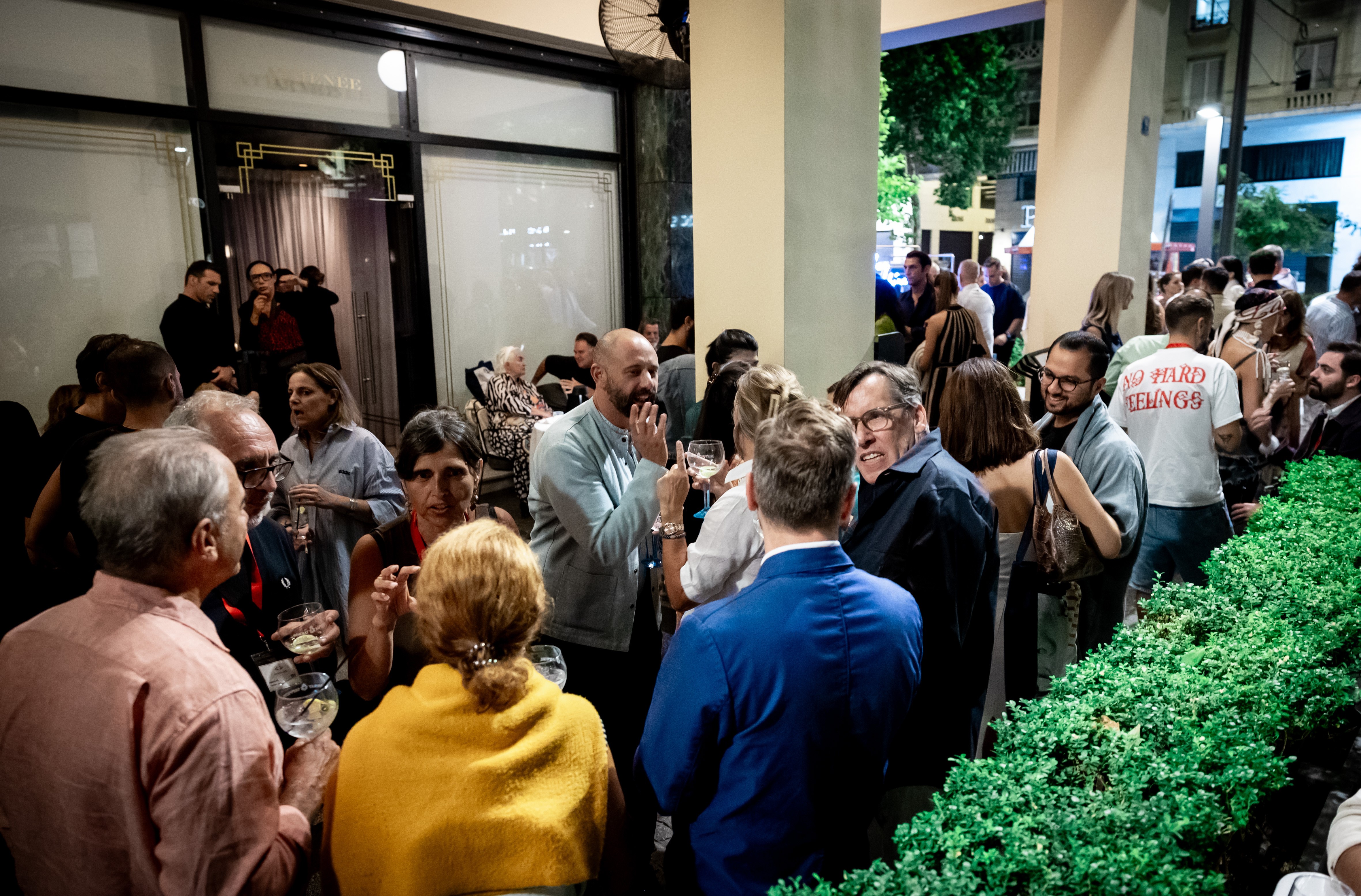 Στο πλαίσιο της διοργάνωσης, πραγματοποιήθηκε το καθιερωμένο party της ART ATHINA στο εμβληματικό Athénée, που εδώ και δεκαετίες αποτελεί σημείο συνάντησης προσωπικοτήτων της τέχνης και του πολιτισμού. Το παρών έδωσαν σημαντικοί καλλιτέχνες, ηθοποιοί, συλλέκτες και φίλοι της σύγχρονης δημιουργίας, απολαμβάνοντας τη μοναδική ατμόσφαιρα του Athénée. Η συγκέντρωση ανέδειξε για ακόμη μια χρονιά το ρόλο του Athénée ως τόπο αναφοράς για τις πιο ξεχωριστές πολιτιστικές στιγμές της πόλης, επιβεβαιώνοντας τη στενή του σύνδεση με την καλλιτεχνικής ζωής της Αθήνας.
