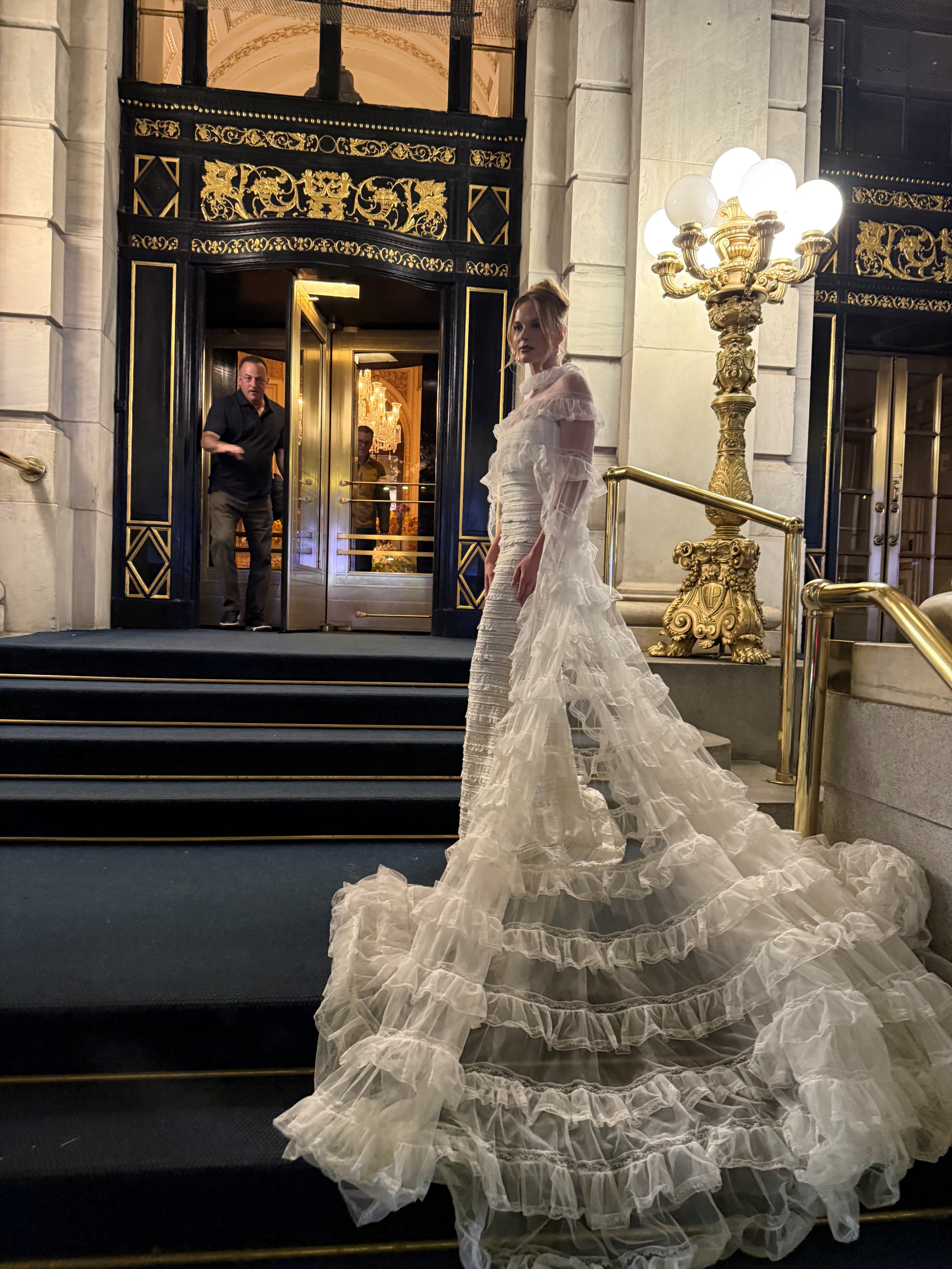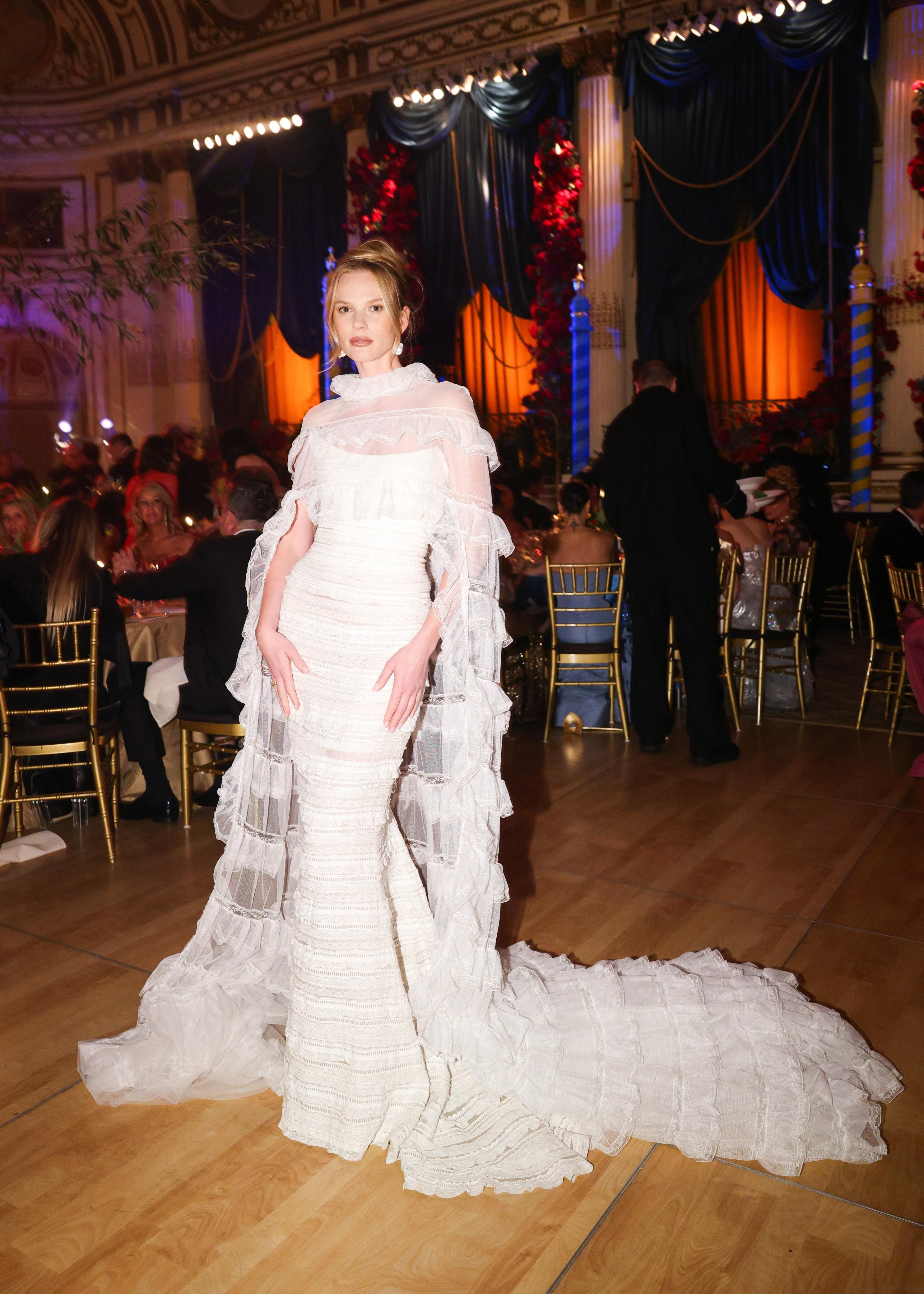 Αξίζει να σημειωθεί πως στο γκαλά παρευρέθηκαν και top models που επέλεξαν εντυπωσιακές μάσκες και δημιουργίες Celia Kritharioti. Μεταξύ αυτών, η Anne V που εμφανίστηκε με ένα εντυπωσιακό εφαρμοστό φόρεμα με μοναδική τεχνική κεντήματος, κορδέλες και δαντέλα, συνοδευόμενο από μια δραματική maxi κάπα, ενώ η Alena Frolova μάγεψε με μια μακριά δημιουργία σε σχήμα V, στολισμένη με κρύσταλλα σε αποχρώσεις του aqua, δημιουργία που παρουσιάστηκε στο Παρίσι με την Naomi Campbell. Κλείνοντας η Emily Rockefeller, επέλεξε ένα μαύρο δαντελένιο φόρεμα, διακοσμημένο με φτερά στρουθοκαμήλου, αποδεικνύοντας τη δεξιοτεχνία και την καλαισθησία που χαρακτηρίζουν κάθε δημιουργία της Celia Kritharioti.
