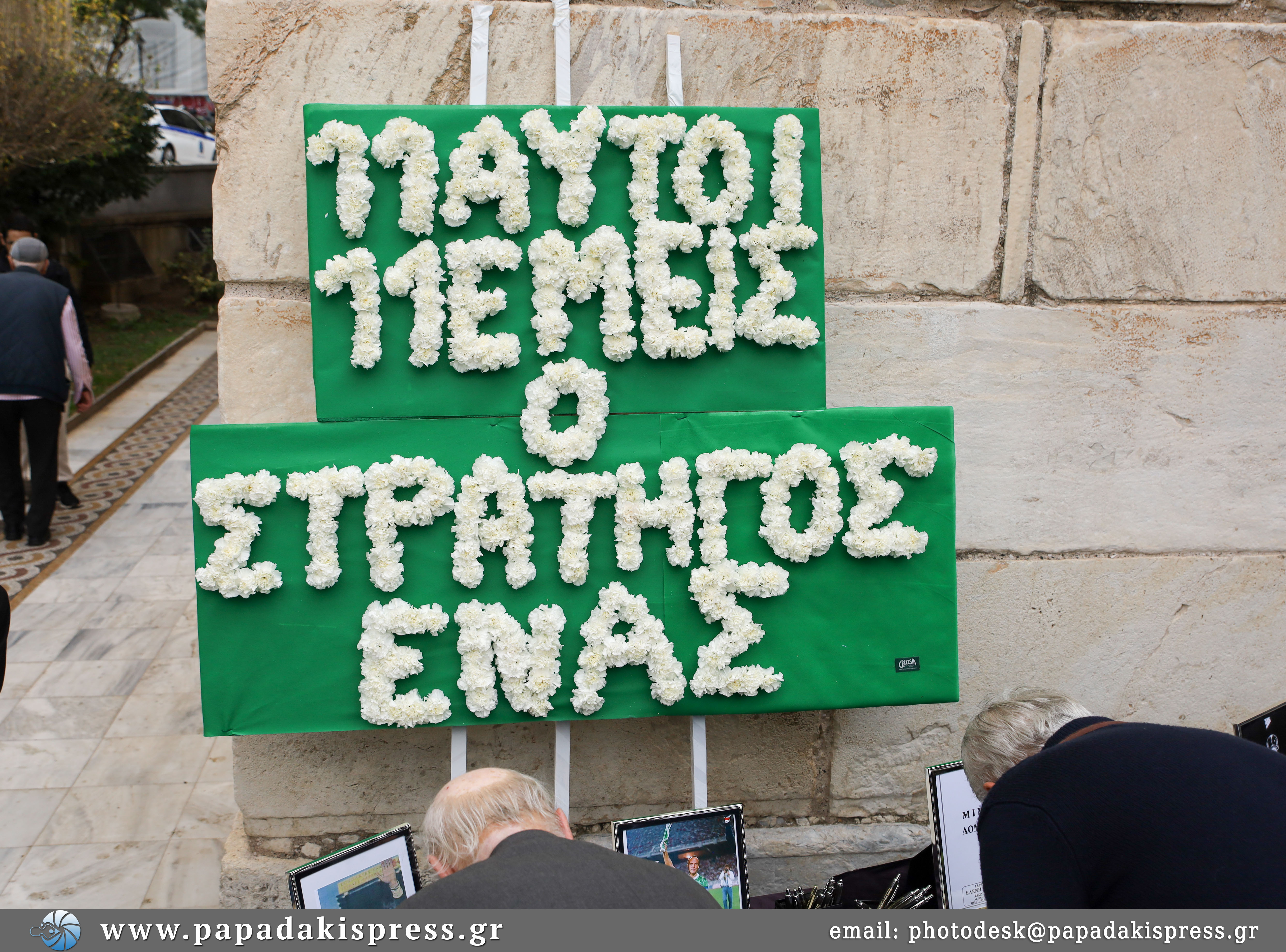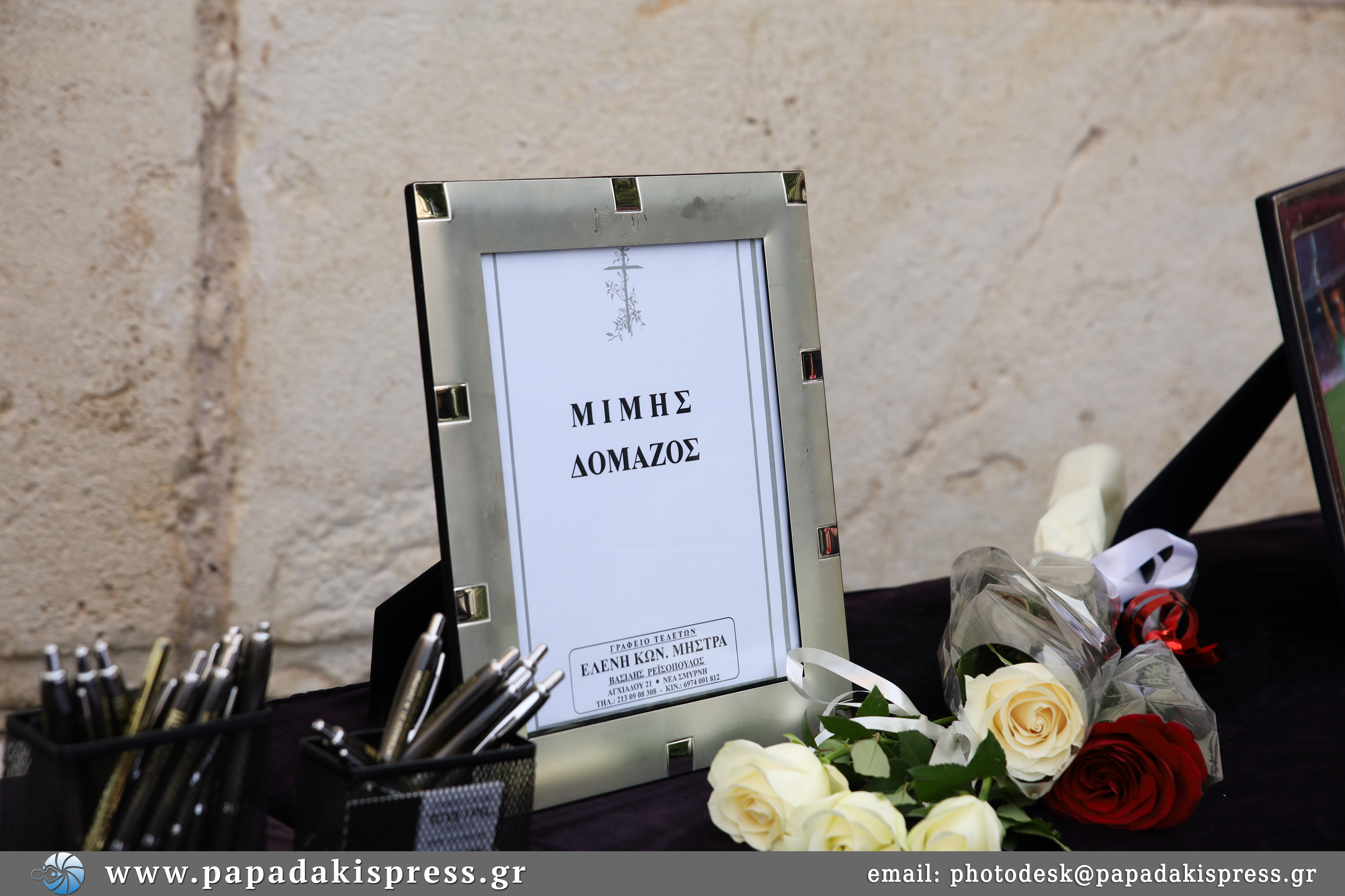 Η οικογένεια, φίλοι, συγγενείς και πλήθος κόσμου που θαύμασε κι αγάπησε τον «στρατηγό» Μίμη Δομάζο, τον αποχαιρέτησαν και είπαν το τελευταίο αντίο με χειροκροτήματα και συνθήματα στη Μητρόπολη Αθηνών. Η σορός του Μίμη Δομάζου μεταφέρθηκε το πρωί στο παρεκκλήσι τις Μητρόπολης για λαϊκό προσκύνημα, αφού πρώτα η πομπή έκανε μια στάση έξω από το γήπεδο στη Λεωφόρο, ενώ από τα μεγάφωνα του «Απόστολος Νικολαΐδης» ακουγόταν ο ύμνος του Παναθηναϊκού. Η ταφή έγινε στο Ά Νεκροταφείο.