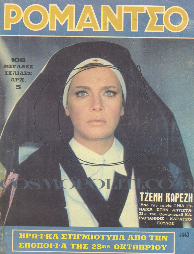 Στην αντίπαλη εταιρία, την Καραγιάννης – Καρατζόπουλος, η Τζένη Καρέζη είναι η Άννα, Μια γυναίκα στην αντίσταση (1970) όπως είναι ο τίτλος της  ταινίας  του Ντίνου Δημόπουλου. Aφού ο αντισυνταγματάρχης πατέρας της και ο αδελφός της, πολεμούν στο μέτωπο, εκείνη ντύνεται εθελόντρια νοσοκόμα, αλλά είναι και σε αντιστασιακή οργάνωση, που εκεί βρίσκεται και ο υποτιθέμενος , πεθαμένος αρραβωνιαστικός της, βοηθάει και στη σύλληψη Γερμανών, και, αν δεν υπήρχε η Υπολοχαγός Νατάσα, το παράσημο το’χε σίγουρο!