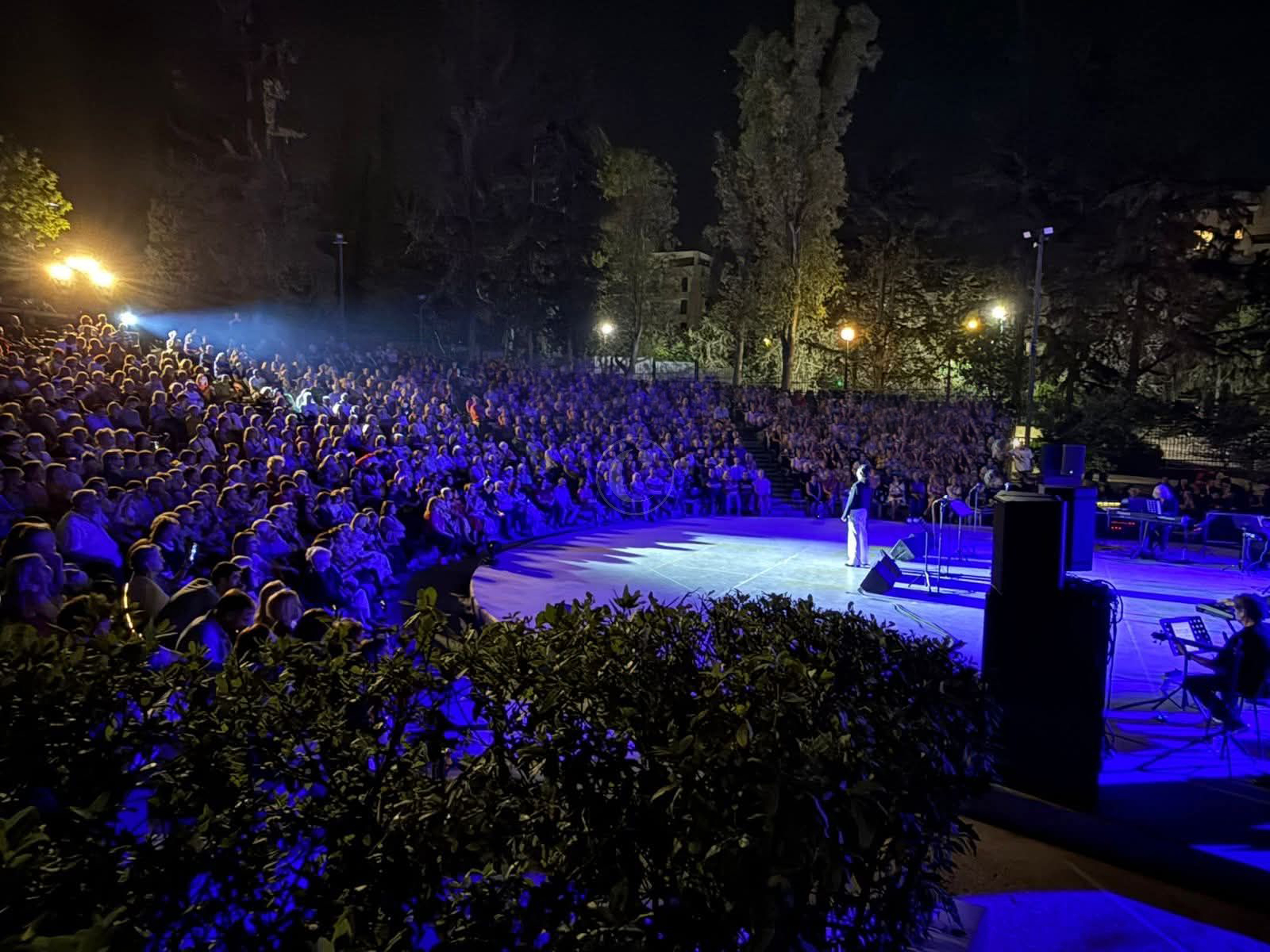 Θερμή υποδοχή επιφύλασσε το κοινό στον αγαπημένο Μάκη Δελαπόρτα, όταν εμφανίστηκε στη σκηνή. Ο ίδιος βγαίνοντας, είπε τα εξής: «Απόψε ήρθα κοντά σας για να σας παρουσιάσω ένα ξεχωριστό αφιέρωμα για τον παγκόσμιο Μίκη Θεοδωράκη, που είχα τη χαρά και την τύχη να συνεργαστώ μαζί του και να επιμεληθώ το 2007 μια σειρά από δικά του soundtrackς, με κορυφαίο τη θρυλική «Συνοικία τα όνειρο» που 46 χρόνια μετά, κυκλοφόρησε για πρώτη φορά από εμένα. Κι αυτό το λέω και καμαρώνω γιατί η ταινία στην πρώτη της προβολή είχε λογοκριθεί, λόγω του ότι είχε γυριστεί σε μια αληθινή φτωχική παραγκούπολη, λίγο πιο κάτω από την Ακρόπολη και η τότε κυβέρνηση θεώρησε πως δεν θα έκανε καλό στον τουρισμό, αφού η ταινία έδειχνε πολύ φτώχεια. Τότε λοιπόν δεν κυκλοφόρησε το soundtrack του φιλμ και ο Θεοδωράκης δεν πληρώθηκε ποτέ για τη μουσική του δημιουργία. Αυτά τα χαμένα master tapes, έφτασαν στα χέρια μου με ένα «μαγικό» τρόπο, τα πήγα στον Μίκη κι έτσι αποφασίσαμε να εκδοθεί επί τέλους η μουσική της ταινίας Συνοικία τ όνειρο, όπου για το συγκεκριμένο φιλμ γράφτηκε πρώτο και το θέμα του Ζορμπά, καθώς και το Βρέχει στη φτωχογειτονιά, που το χαρακτήρισαν ως τον «ύμνο της φτωχολογιάς» για εκείνα τα χρόνια. Τι είχε συμβεί; Πολύ απλά, ένας μεγάλος σε ηλικία ηχολήπτης που είχε ο ίδιος ηχογραφήσει τις μουσικές της ταινίας βλέποντας την τόση μεγάλη αγάπη μου για τις μουσικές και τα τραγούδια του ελληνικού σινεμά θέλησε να μου δώσει τα master tapes, που τόσα χρόνια τα κρατούσε σαν κόρη οφθαλμού, λέγοντάς μου, πως «εσύ ξέρεις τι πρέπει να κάνεις με αυτή την εξαίσια μουσική του Μίκη, αφού αγαπάς και σώζεις τις μουσικές και τα τραγούδια του ελληνικού σινεμά». Αυτή ήταν και η αφορμή να γνωρίσω και τον Μίκη που με πολύ χαρά θέλησε να κυκλοφορήσουμε και το συγκεκριμένο soundtrack. Φέτος, λόγω του ότι το Υπουργείο Πολιτισμού ανακήρυξε το 2025 ως «Αφιερωματικό έτος Μίκη Θεοδωράκη», καθώς συμπληρώνονται 100 χρόνια από την γέννησή του, αποφάσισα να εκδώσω ένα βιβλίο που το έγραψα κάνοντας ενδελεχή έρευνα για το έργο του, με τον τίτλο «Μίκης Θεοδωράκης, Στη Σκηνή και στην Οθόνη». Το βιβλίο κυκλοφορεί αποκλειστικά από το ΤΑΣΕΗ (Ταμείο Αλληλοβοηθείας Σωματείου Ελλήνων Ηθοποιών) με πρόεδρο τον Σπύρο Μπιμπίλα και τα έσοδά του πηγαίνουν για να στηρίξουν ηθοποιούς που αντιμετωπίζουν σοβαρά προβλήματα, αφού όταν σβήσουν τα φώτα πολλοί από αυτούς αναγκάζονται να «ζουν στο σκοτάδι». Αυτό θεωρώ πως ούτε ο Μίκης θα το ήθελε, γι ‘αυτό αποφασίσαμε όλα τα έσοδα του βιβλίου να στηρίξουν συναδέλφους με δύσκολη διαβίωση. Εξάλλου ο Μίκης αγαπούσε βαθιά τους ηθοποιούς και έκανε, όλα τα χρόνια που συνεργάστηκε μαζί τους στο θέατρο και στον κινηματογράφο, μεγάλες και ουσιαστικές φιλίες που κράτησαν για πάντα. Ηθοποιοί, όπως η Κατίνα Παξινού, ο Αλέξης Μινωτής, η Μελίνα Μερκούρη, η Ειρήνη Παππά, ο Μάνος Κατράκης, η Άννα Συνοδινού, η Τζένη Καρέζη, η Αλίκη Βουγιουκλάκη και πολλοί ακόμα, έγιναν φίλοι ζωής για εκείνον.