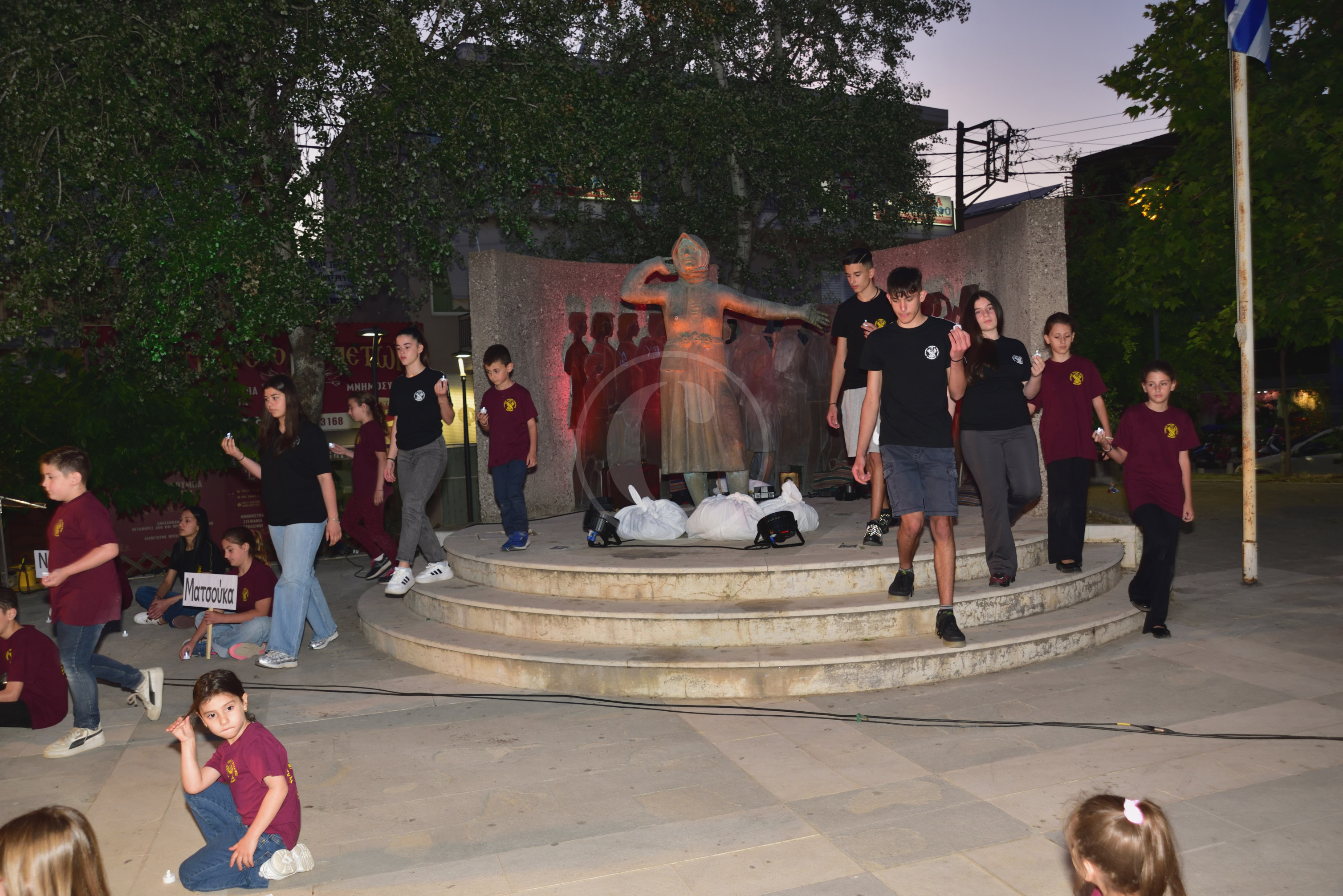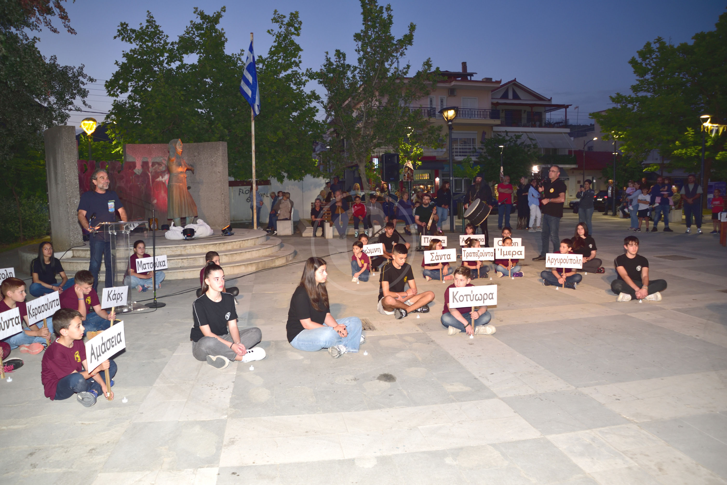Δρώμενο όπου τα παιδιά του Ποντιακού Συλλόγου Δημ. Ψαθάς κρατούν στα χέρια τους επιγραφές με όλες τις περιοχές του Ευξείνου Πόντου την ώρα που ο δάσκαλος του συλλόγου Λεωνίδας Σταρακάς απαγγέλει αποσπάσματα για την Γενοκτονία των Ποντίων (φωτ. Μιχ. Νίνογλου)
