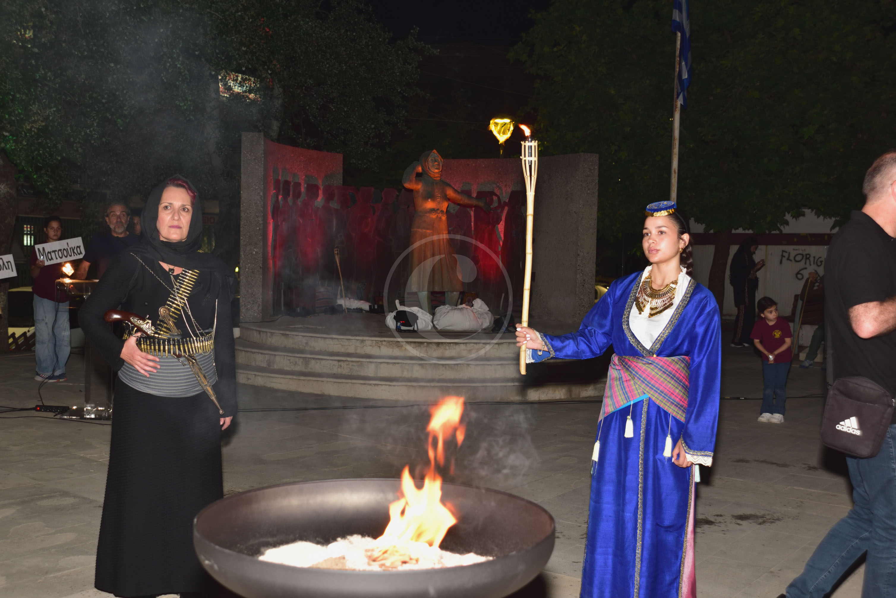Το άναμμα της εστίας με δάδες από τις γυναίκες του Ποντιακού συλλόγου Αιτ/νιας “Δημήτρης Ψαθάς” που φορούσαν παραδοσιακές φορεσιές (φωτ. Μιχ. Νίνογλου)