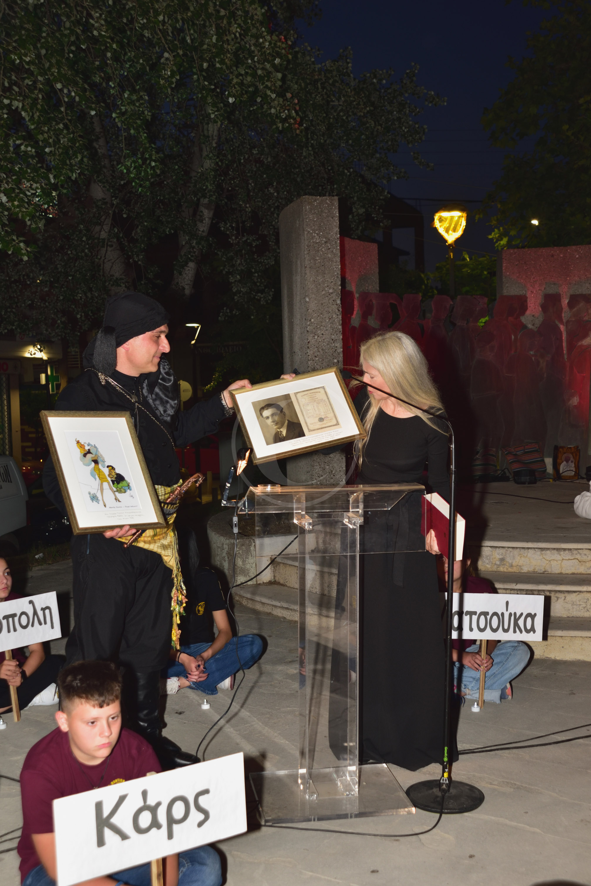 Στη συνέχεια οι δάσκαλοι Λεωνίδας Σταρακάς και Χάρης Σανδαλίδης, απήγγειλαν αποσπάσματα από την Γενοκτονία των Ποντίων και φώτισαν με σεβασμό και συγκίνηση τα ιστορικά γεγονότα και την ανάγκη για τη διατήρηση της μνήμης.
